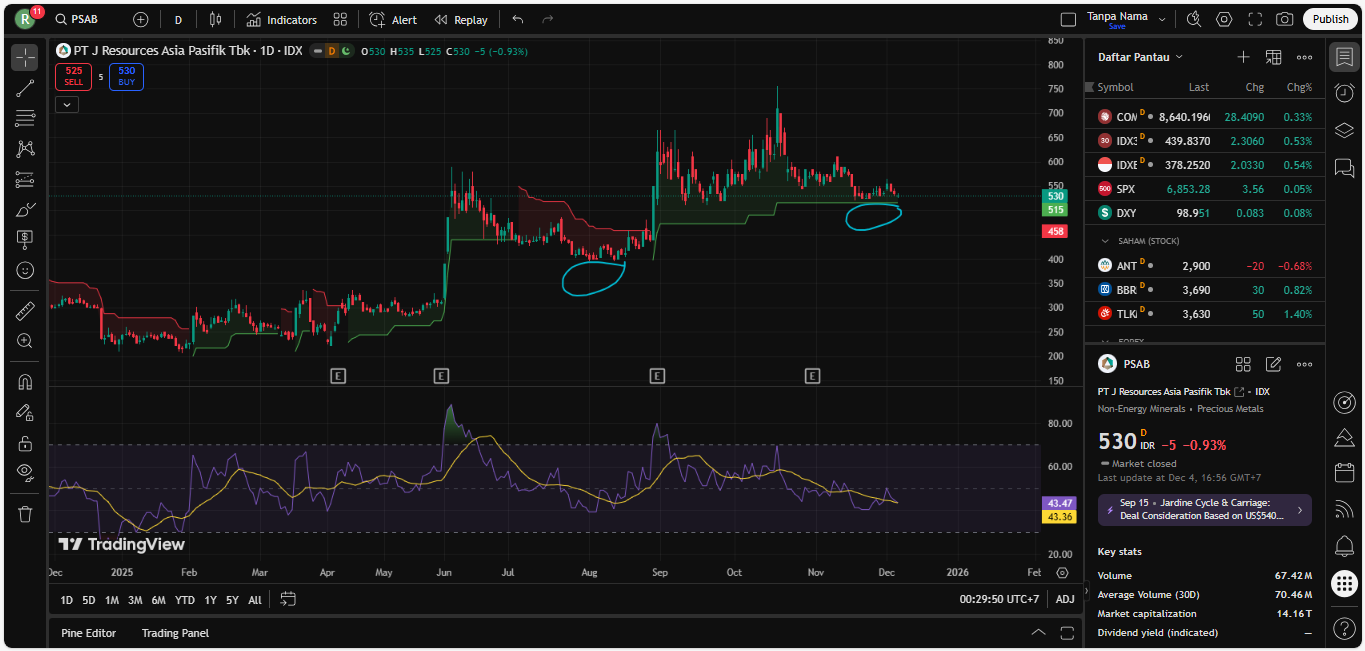 3 SKENARIO ENTRY $PSAB (Versi Swing Trader) — Harga 530