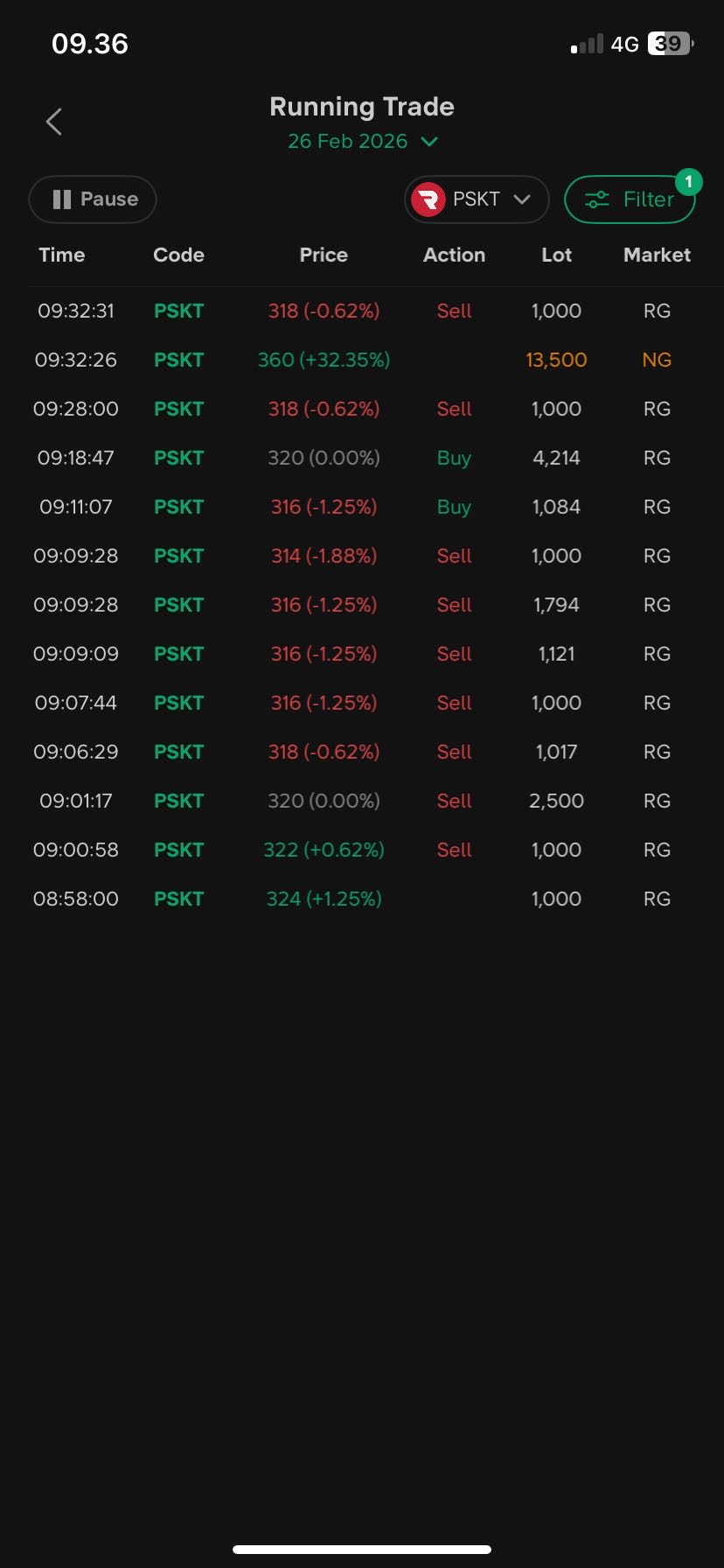 $PSKT msi mnding klo naiknya tggi trunnya dalem . Ini naik ud paling dikit , gliran trun paling kenceng dibanding saham hh lainnya , cuki dah