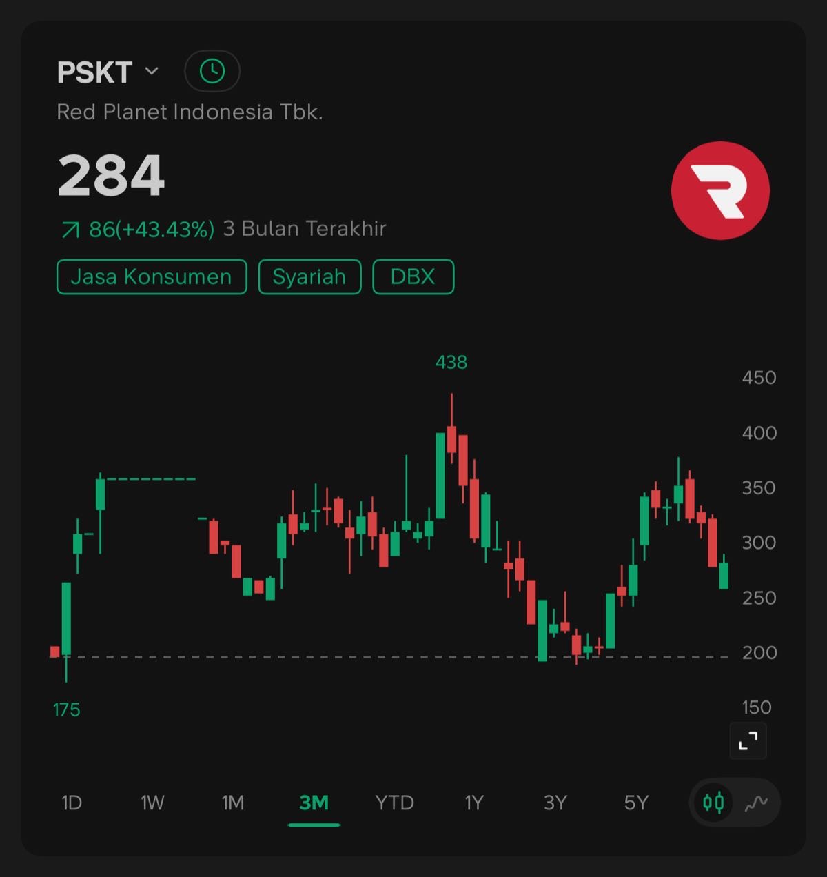 PT. Red Planet Indonesia Tbk (PSKT) bergerak dalam bidang perhotelan. Perusahaan ini merupakan bagian dari Regional Red Planet Hotels Group. Perusahaan saat ini memiliki dan mengoperasikan tujuh hotel di Indonesia, dengan rencana pengembangan proyek sampai dengan tahun 2017. Perusahaan berencana untuk melipat-gandakan portofolionya pada tahun 2020 dengan cara pembangunan dari awal (green field builds) dan akuisisi.