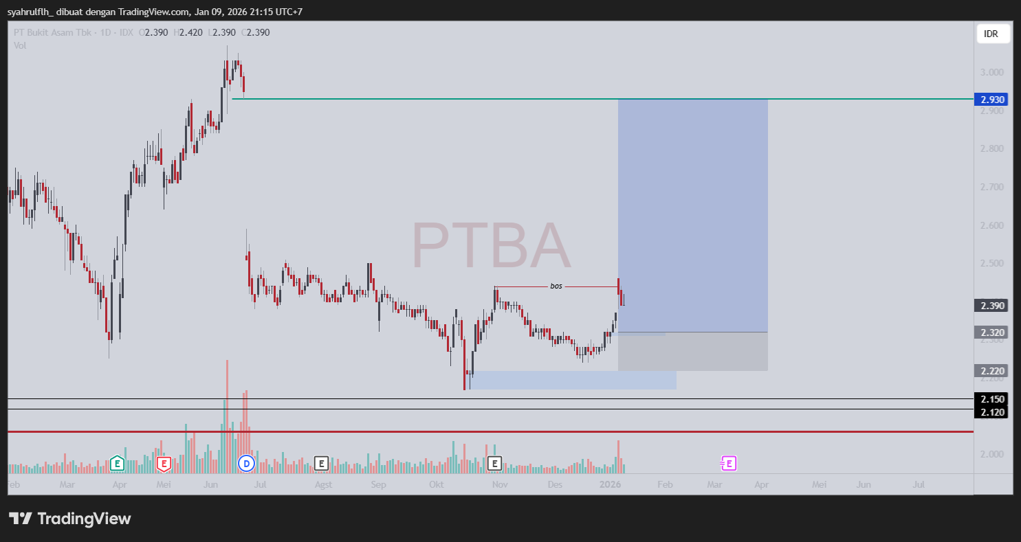 • 💰 Harga PTBA tertahan di area Rp2.380–Rp2.420, menandakan pertahanan kuat buyer.