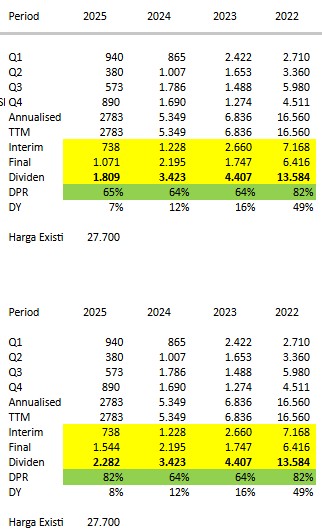 Perkiraan net profit 4.5T/quarter, prediksi FY26 akan sekitar 18T. Bayangkan besaran div yield yg bisa dihasilkan