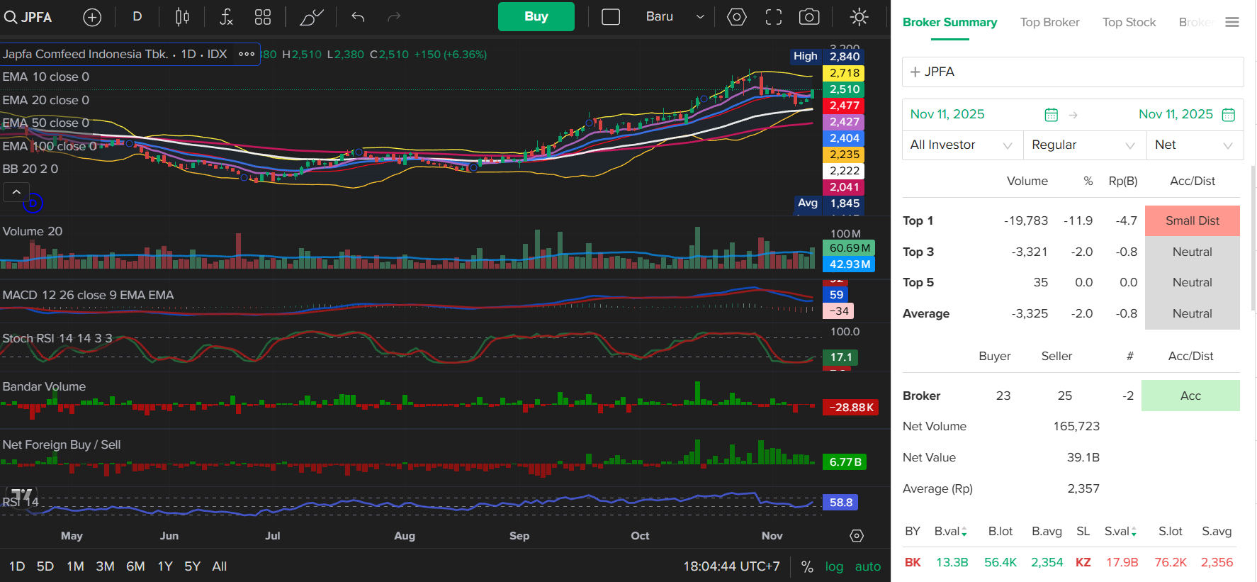 Tekanan jual mulai reda, akumulasi ringan terlihat. Jika tembus 2.550 dengan volume tinggi, potensi lanjut naik ke 2.700 cukup besar.