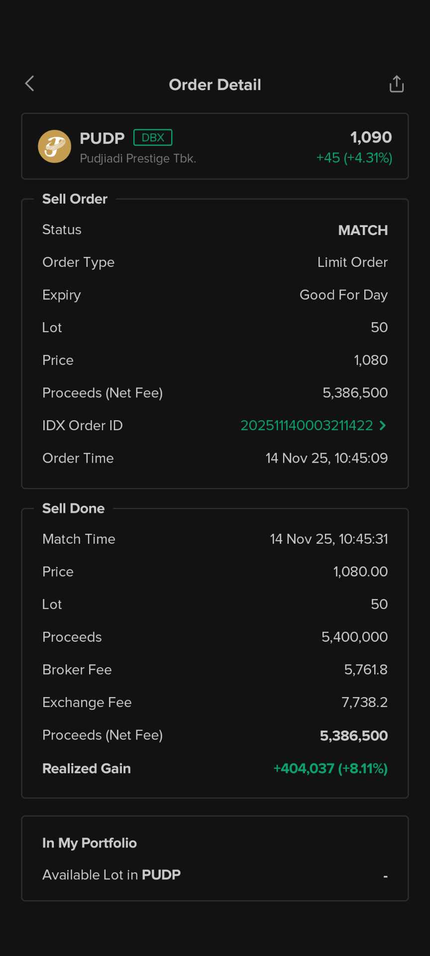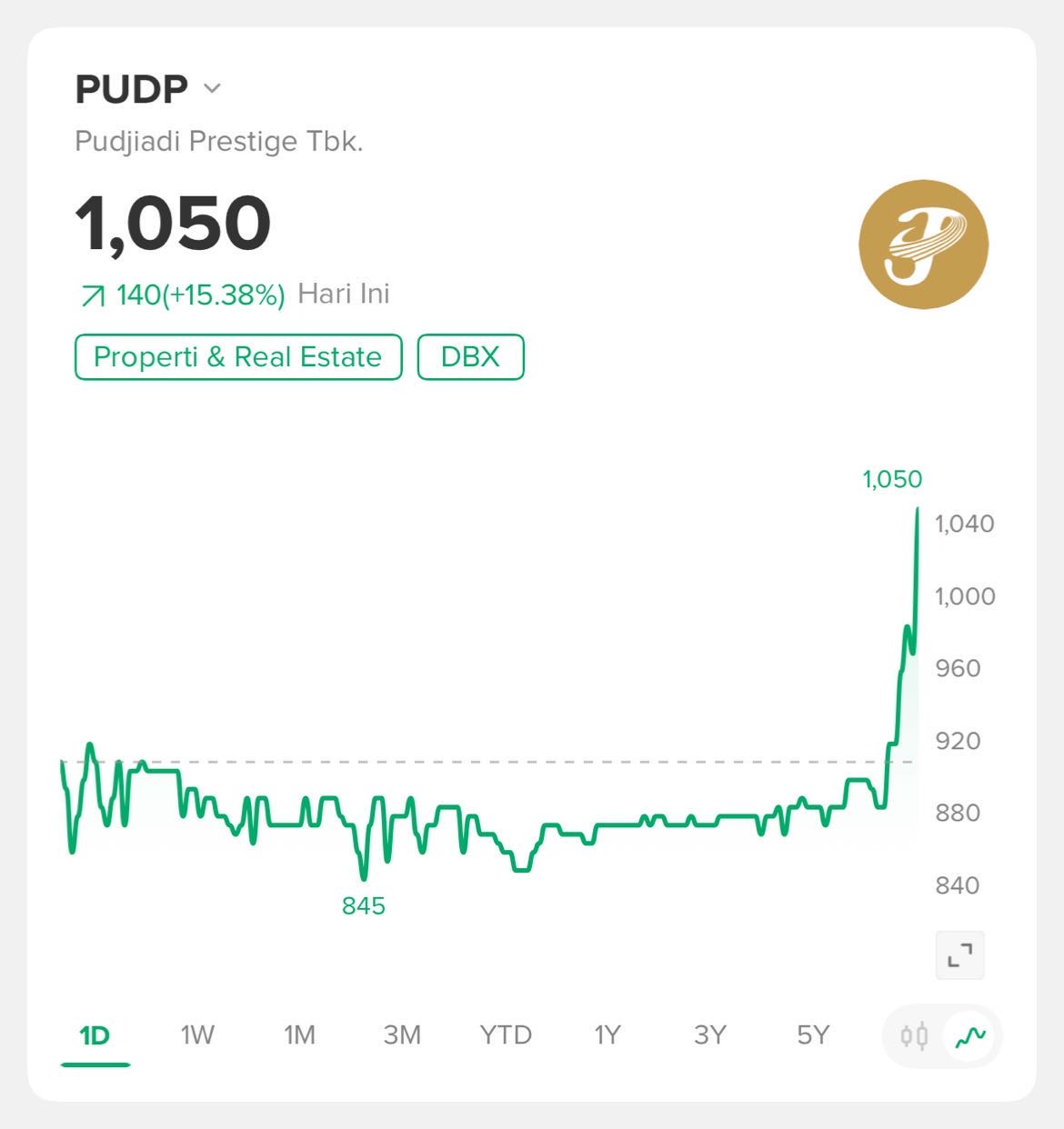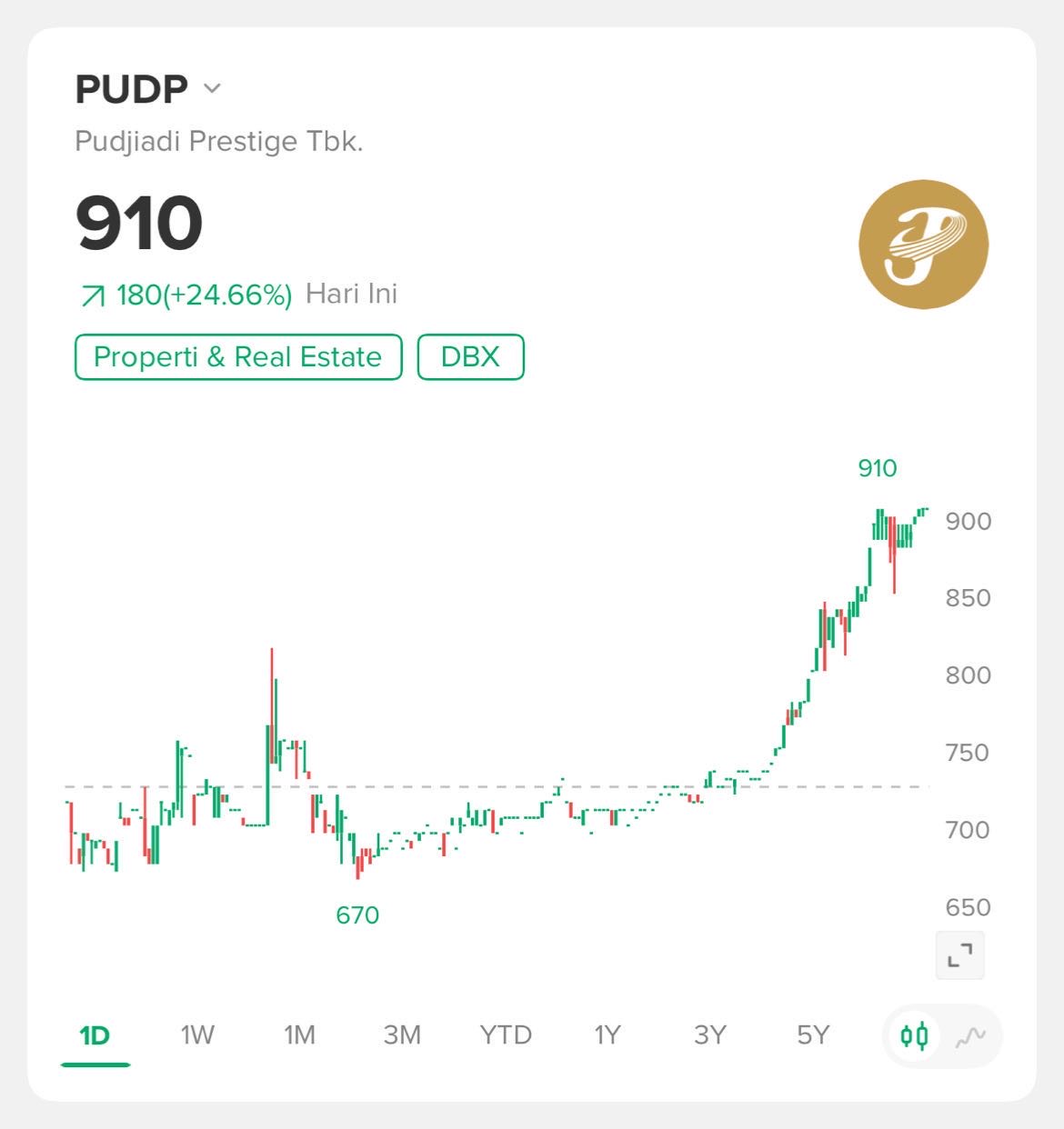 $PUDP tdi beli di 900 ehh naik 10%, padahal prediksi bsk maximal nya 15% naik langsung TP. liatnya ini hari sdh naik menjelang penutupan pasar langsung jual dapat nya 1 jt an lumayan lah beli siomay,ingat dalam saham tdk boleh serakah asal cukup Alhamdulillah jangan lupa pakai SL