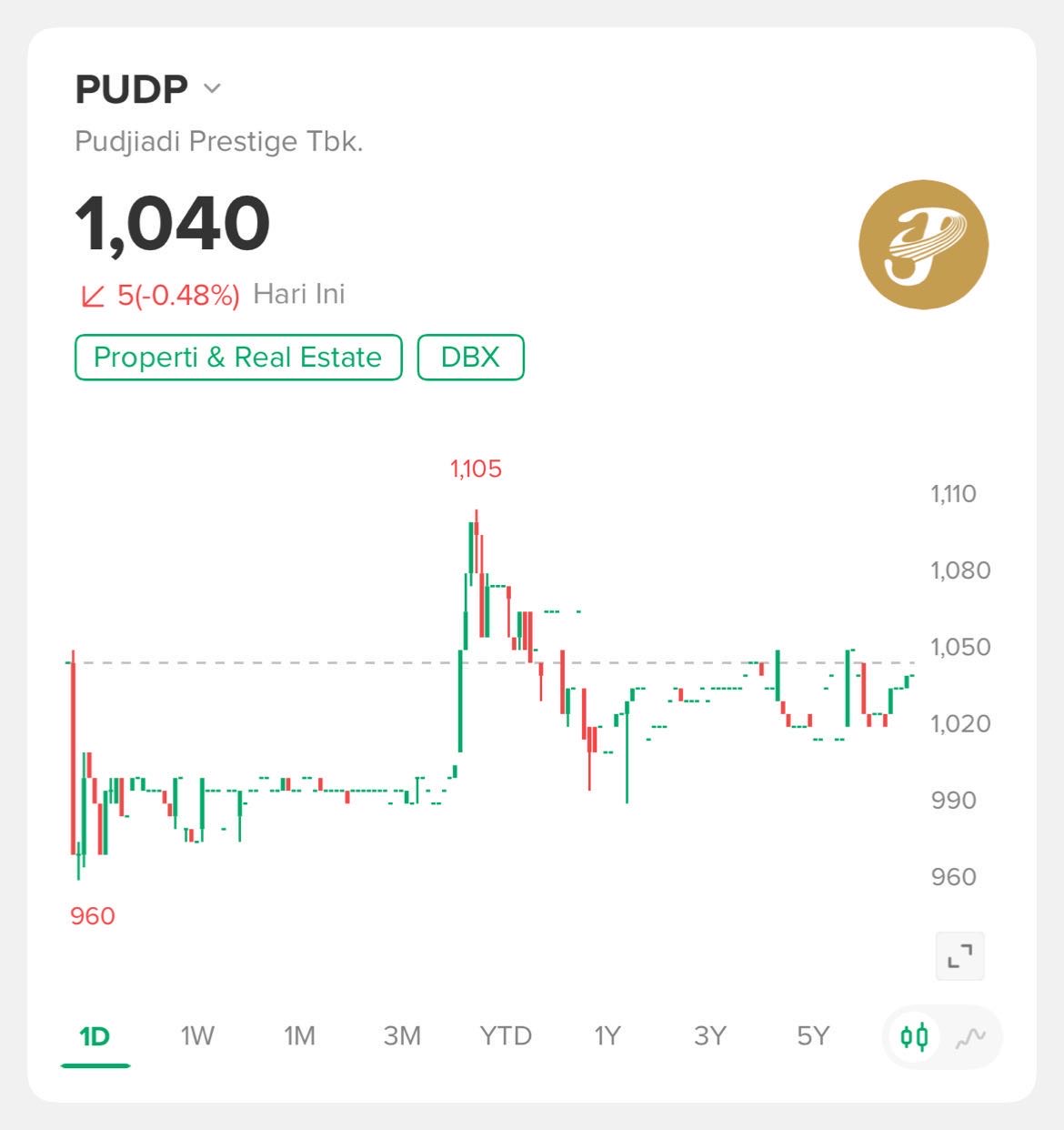 PT. Pudjiadi Prestige Tbk (PUDP) bergerak di bidang real estat, konstruksi, dan sewa ruang / apartemen. Anak perusahaan dari The Jayakarta Group ini mempunyai bisnis antara lain dengan mambangun apartemen, prumahan, hotel, dan pusat perbelanjaan yang tersebar di beberapa kota seperti Jakarta, Anyer, Serang, Bandung, Yogyakarta, Bali, hingga flores. Perusahaan menyewakan Apartemen Jayakarta Plaza, Apartemen Senopati, Apartemen Kemang, Apartemen Prapanca dan penjualan Kuta Palace Residence dan Green Palace Residence. Perusahaan melalui anak perusahaan, memiliki Marbella Hotel yang berlokasi di Anyer, Banten. Proyek terakhir perusa... Read More