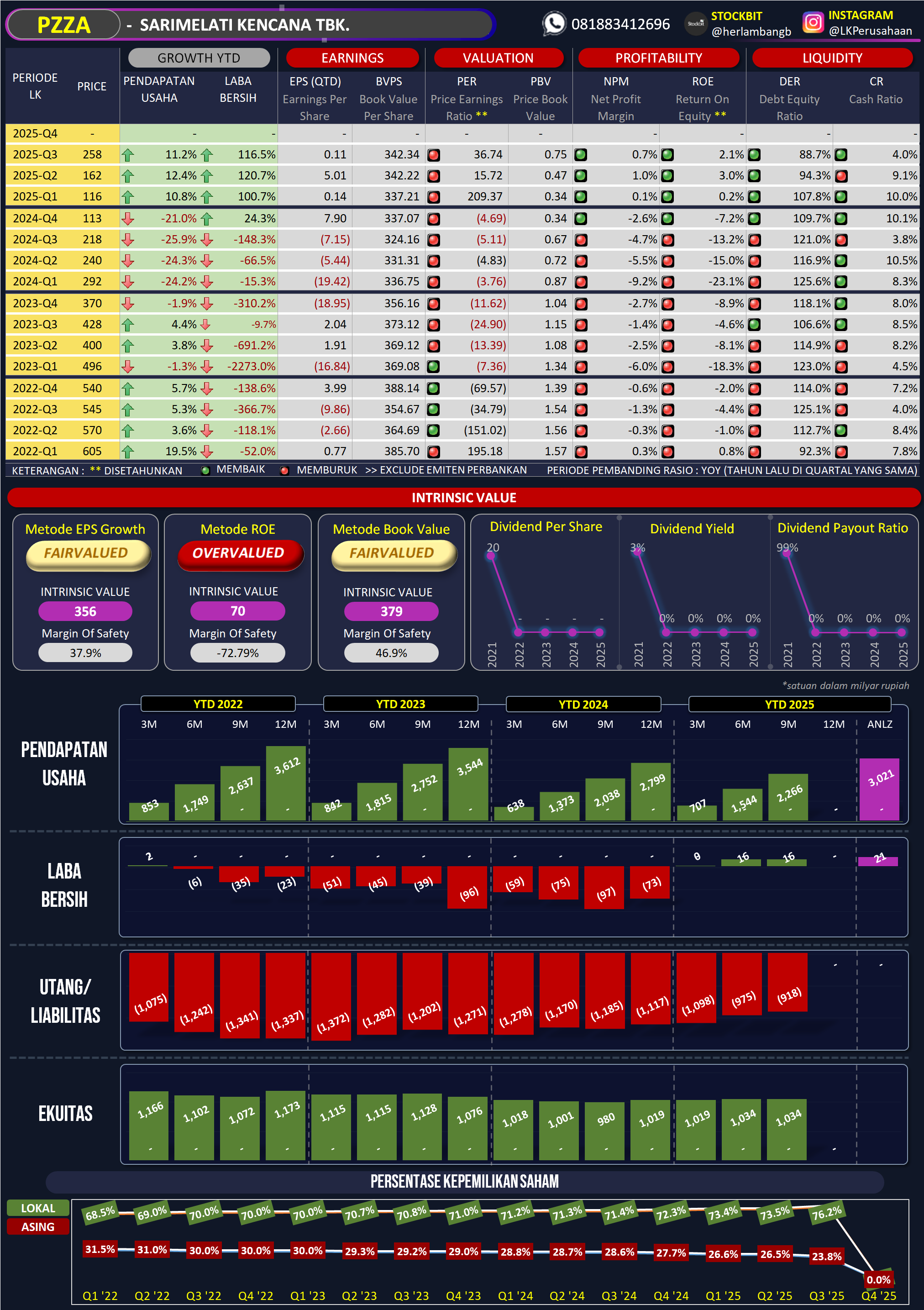Jadi $PZZA masih bisa untung plus arus kas operasional positif di Q3 udah bagus.
