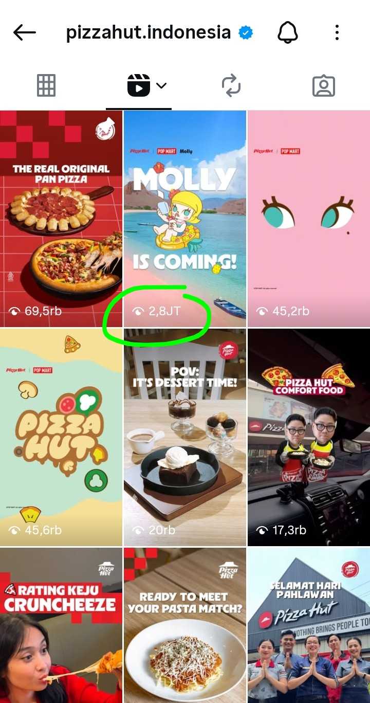 2,8 juta views instagram reels $PZZA dalam waktu 7 jam setelah colab posting announcement Molly dengan instagram Pop Mart.