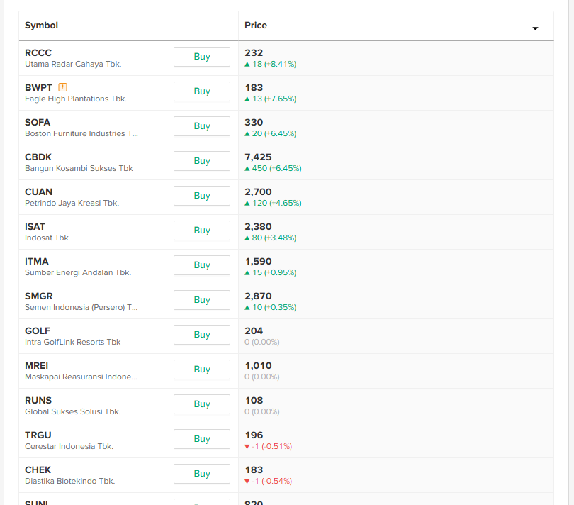 [LIST SEMUA SAHAM : 954 EMITEN - MAKS 30 GAP UP & DOWN]
