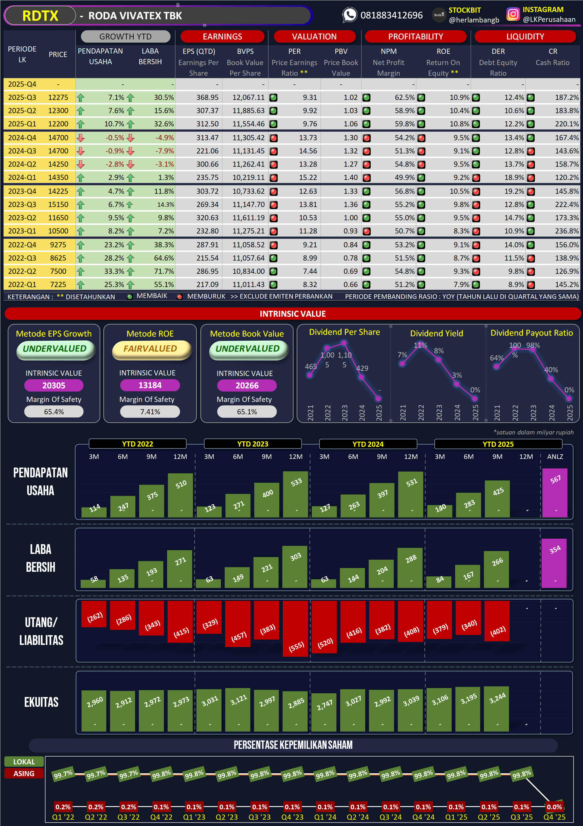 $RDTX pada Q3 2025 membukukan Laba Bersih Rp 99 B atau naik 66.90% dibanding Q3 2024 sebesar Rp 59 B. Pada perdagangan saat ini, PE Ratio (TTM) perseroan berada di level 9.43x.