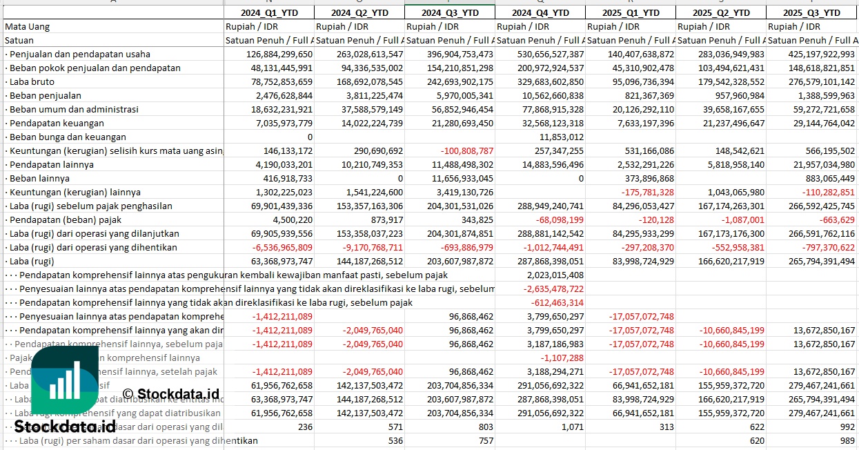 Laba bersih Q3 2025 melonjak 1.361% YoY ke Rp6,43 triliun (naik signifikan akibat efek one-off gain); revenue naik 65% YoY ke Rp8,80 triliun, profitabilitas didorong sektor digital, akuisisi SCMA, pipeline Superbank IPO, valuasi fundamental PBV 2,2x di bawah peer rata-rata.