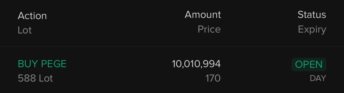 Contoh order: Limit pullback base, Stop Market SL ATR, trailing >4% gain.