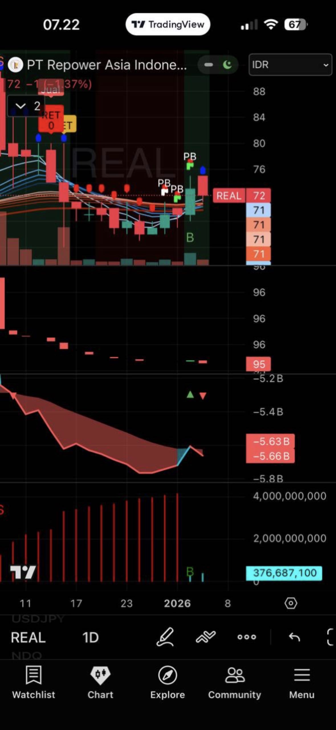 $REAL, downtrend, dibalik koreksinya REAL kemarin ada bandar yang nampung, namun seminggu terakhir masih dominan seller, belum ada volume masuk yang tinggi, vpa hijau tipis.