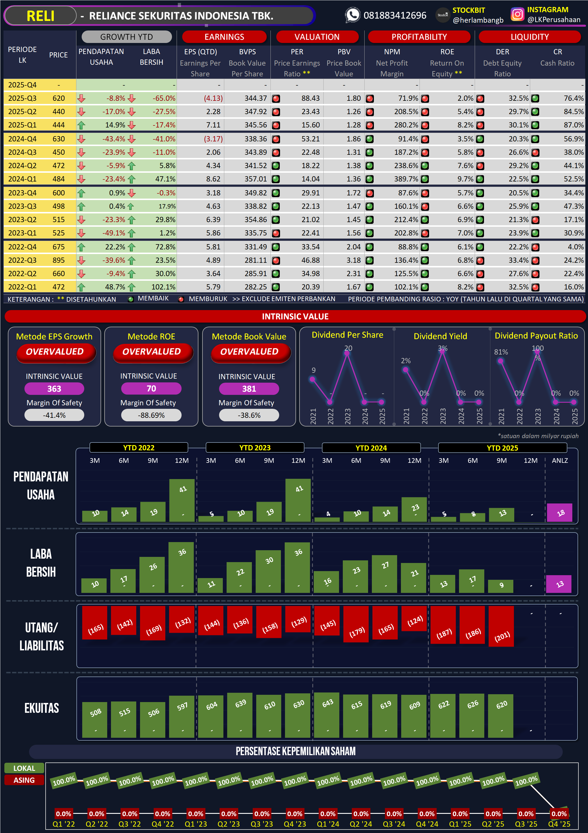 Dividen konsisten dan arus kas sehat, namun NPM & GPM rendah, valuasi PBV 2.6x (overvalued), earning stagnan, volume ekspor heat-not-burn naik 190% YoY di Q3.