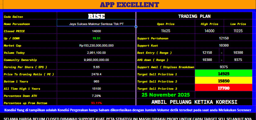 PT Jaya Sukses Makmur Sentosa Tbk (RISE) akan membagikan saham bonus dari agio saham senilai Rp525 miliar dengan rasio 25:12 untuk memperkuat struktur modal dan meningkatkan likuiditas saham, setelah disetujui pada RUPSLB 8 Januari 2025.