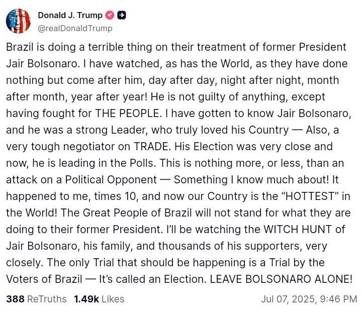 ➖ Definisi Trump nyari temen, Bolsonaro, yang sedang diadili dalam kasus dugaan ikut serta rencana kudeta.