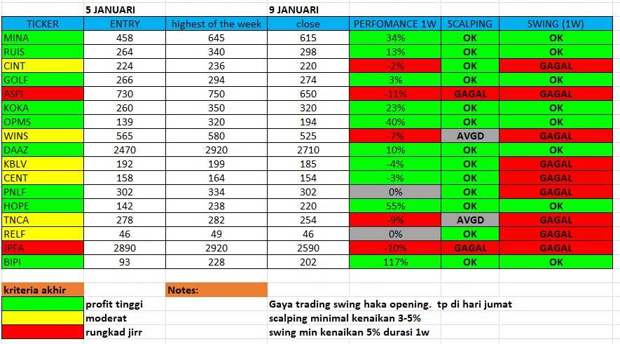evaluasi perfomance screener swing/scalping ritel dengan gaya trade haka iep opening. setelah sy lihat kembali ternyata ada 2 yang gatot๐