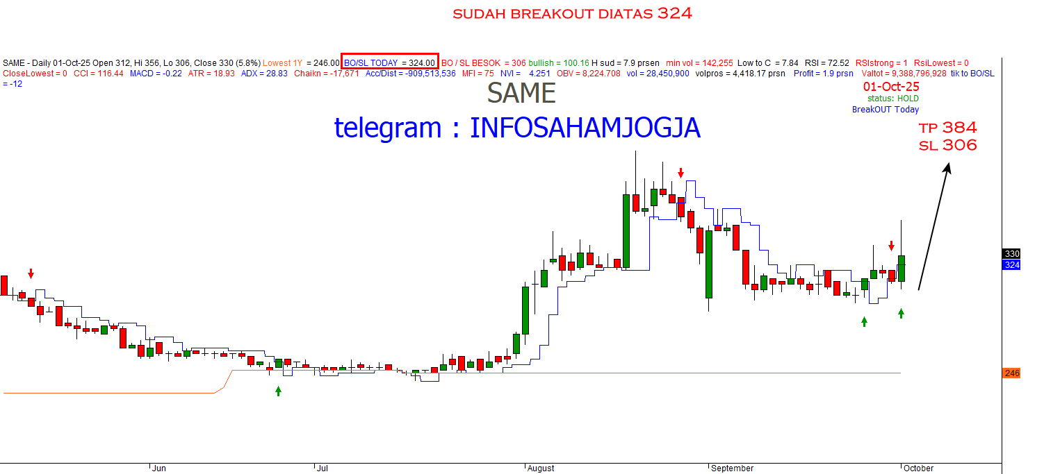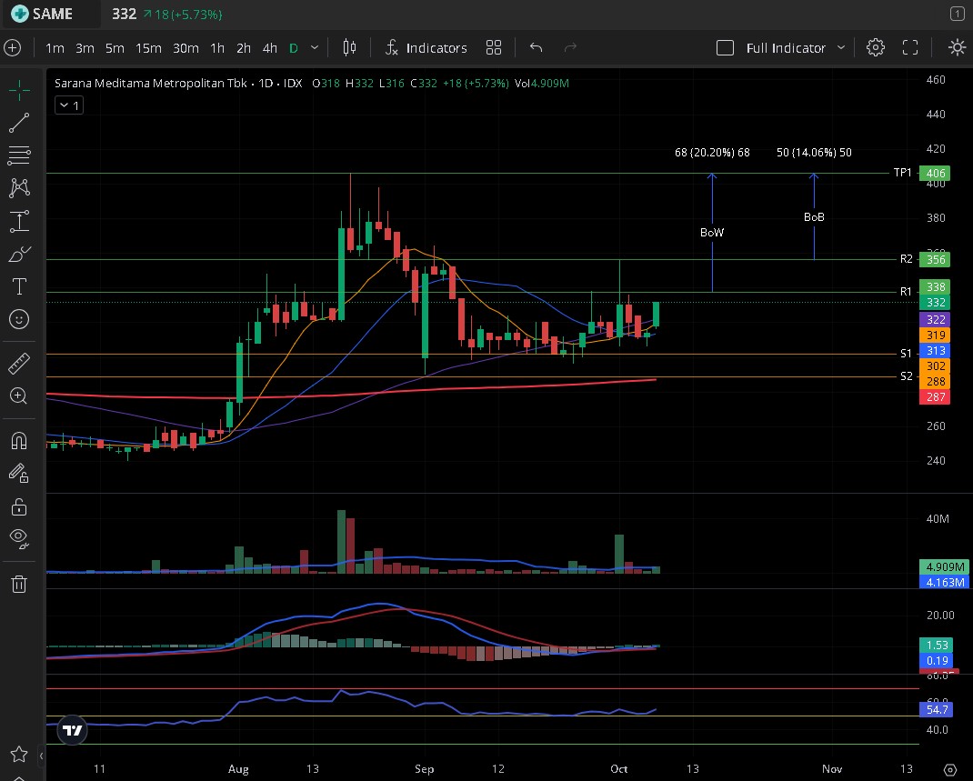 $SAME menarik kalau bisa BO > 338, makin menarik kalau bisa BO > 356.