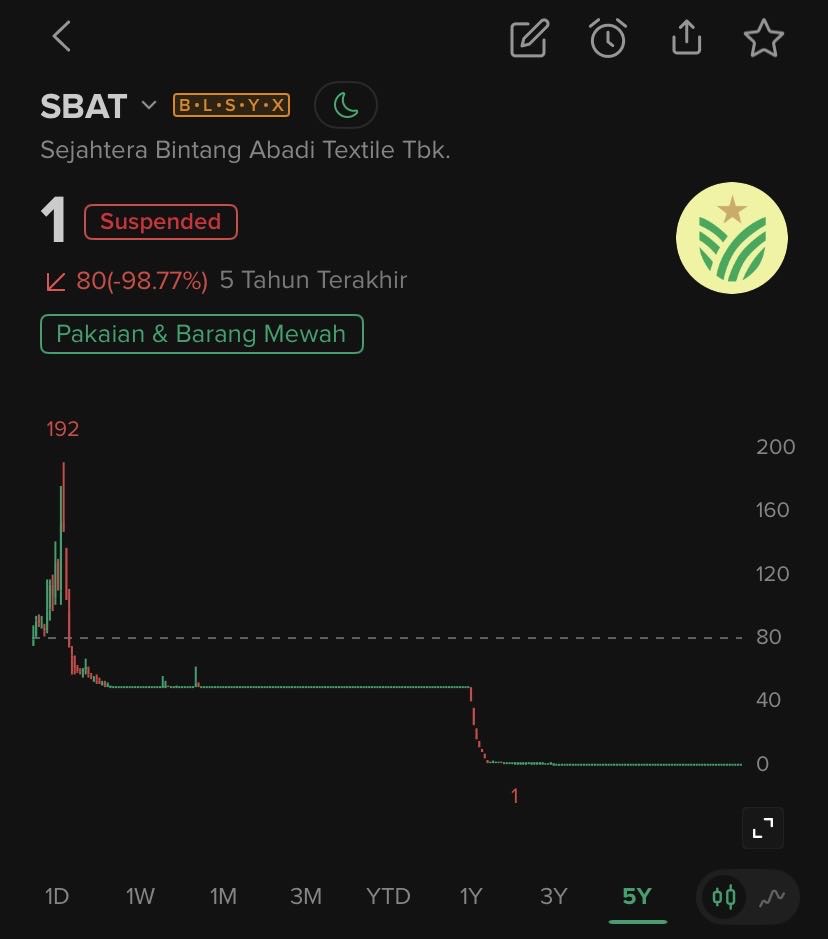 $SBAT kalian yang mau beli saham SBAT bilang dm/chat aja itu kalian tau nggak kalau SBAT suspend semua pasar? gimana bisa di jual kalau kayak gitu 🤨