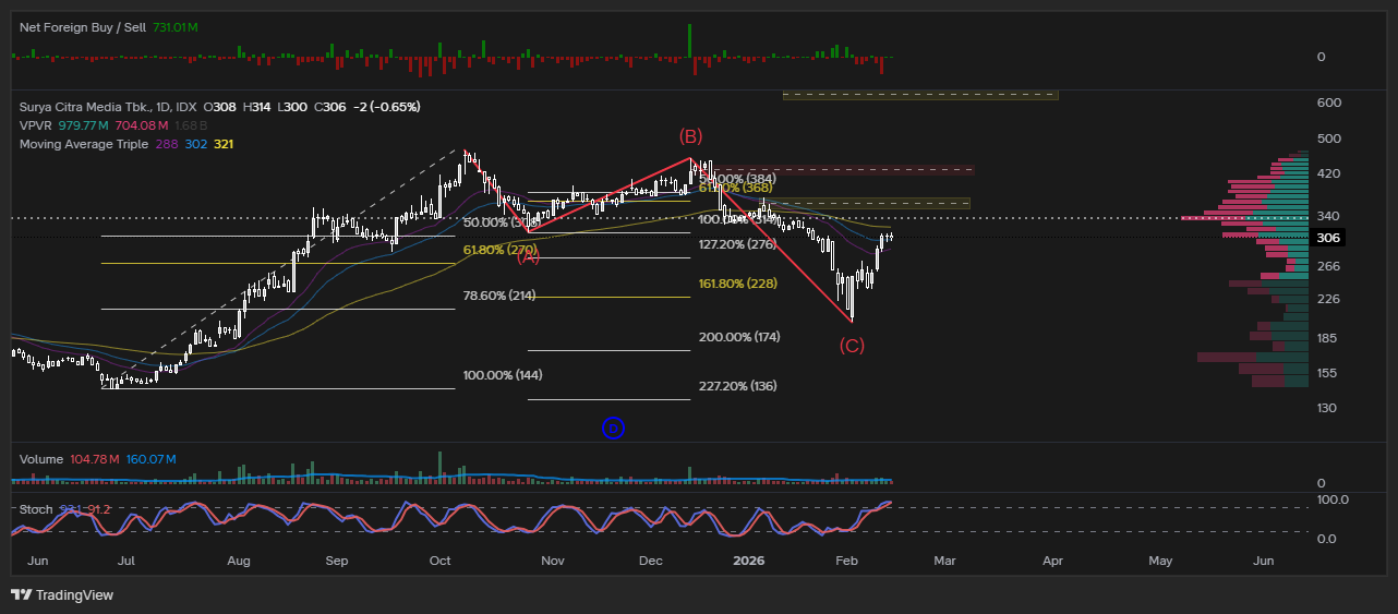 Saya target $SCMA ke 410 atau extensi ke 640, sesuai forecast idea saya di profile..