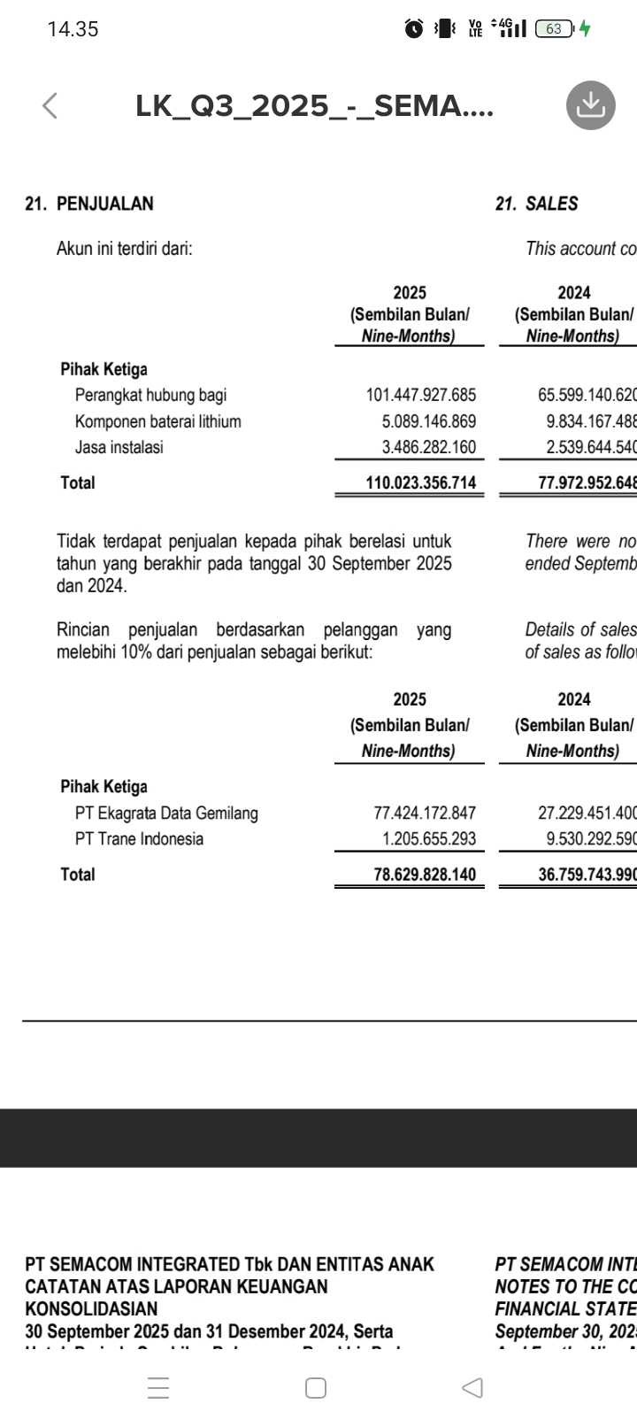 klien $SEMA adalah PT Ekagrata Data Gemilang dengan kenaikan penjualan 2025 sebesar 77 miliar.