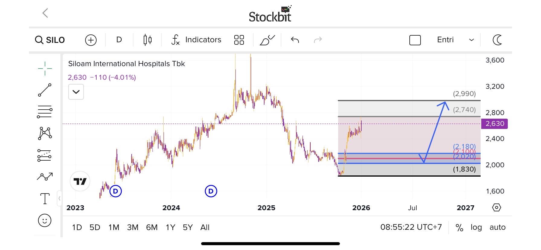 SILO layak dipantau untuk swing trading selama bertahan di atas support kunci 2.400.