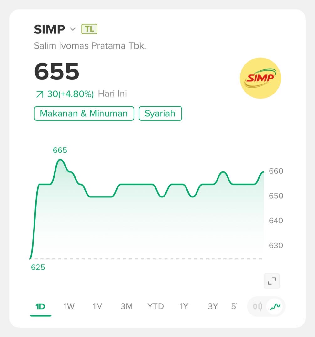 ๐ผ $SIMP gap up ke 650 (+25 / +4%) dari 625