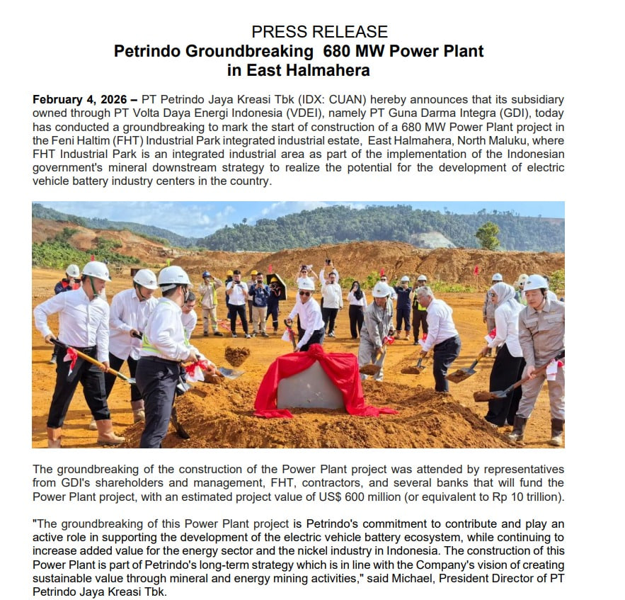 $CUAN bangun PLTU 680 MW (10T) kepemilkan langsung 90% di lokasi kawasan Feni Haltim Industrial Park, Pusat hilirisasi mineral nikel dan EV Battery Ecosystem terintegrasi, di Halmahera Timur, Maluku Utara.