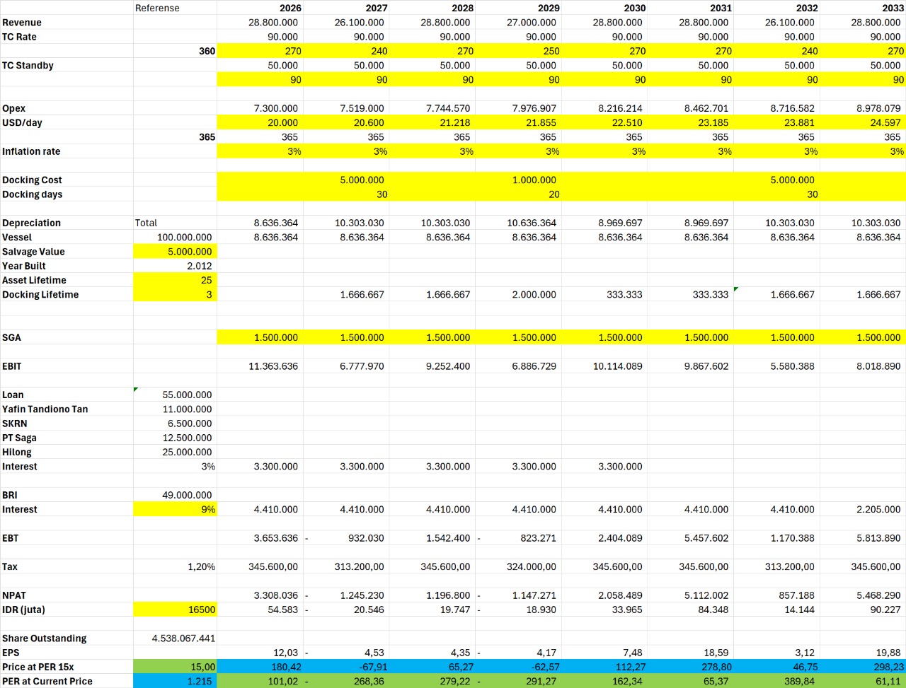 Pertimbangan lainnya adalah rencana kerja besar kedepan ini "dipercaya & didukung" oleh pemegang PN (hai long & SKRN Group) dan BBRI yang mana pasti mereka sudah menganalisa kemampuan cash flow dari rencana kedepan tersebut.