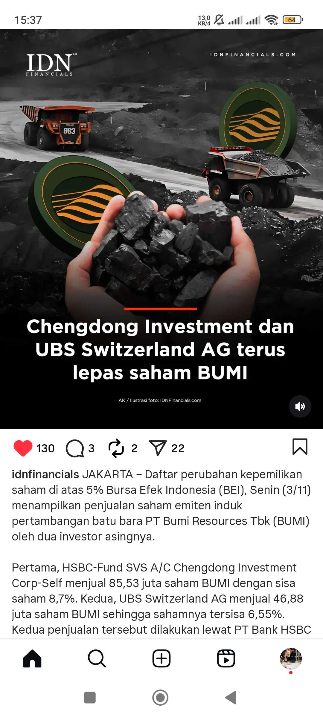 @Hasan1009 gagal bayar bisa seperti cendong jualan sahamnya di $BUMI sampe ke palung mariana ini bisa juga terjadi kepada $CBRE selaku pemberi pinjaman dari $SKRN dan hilong grup konversi ke saham jika tidak bisa membayar pinjaman tersebut. emang pada dablek dikasih taunya 😅😅😅 sudah berulang kali dengan volume yg besar seperti ini