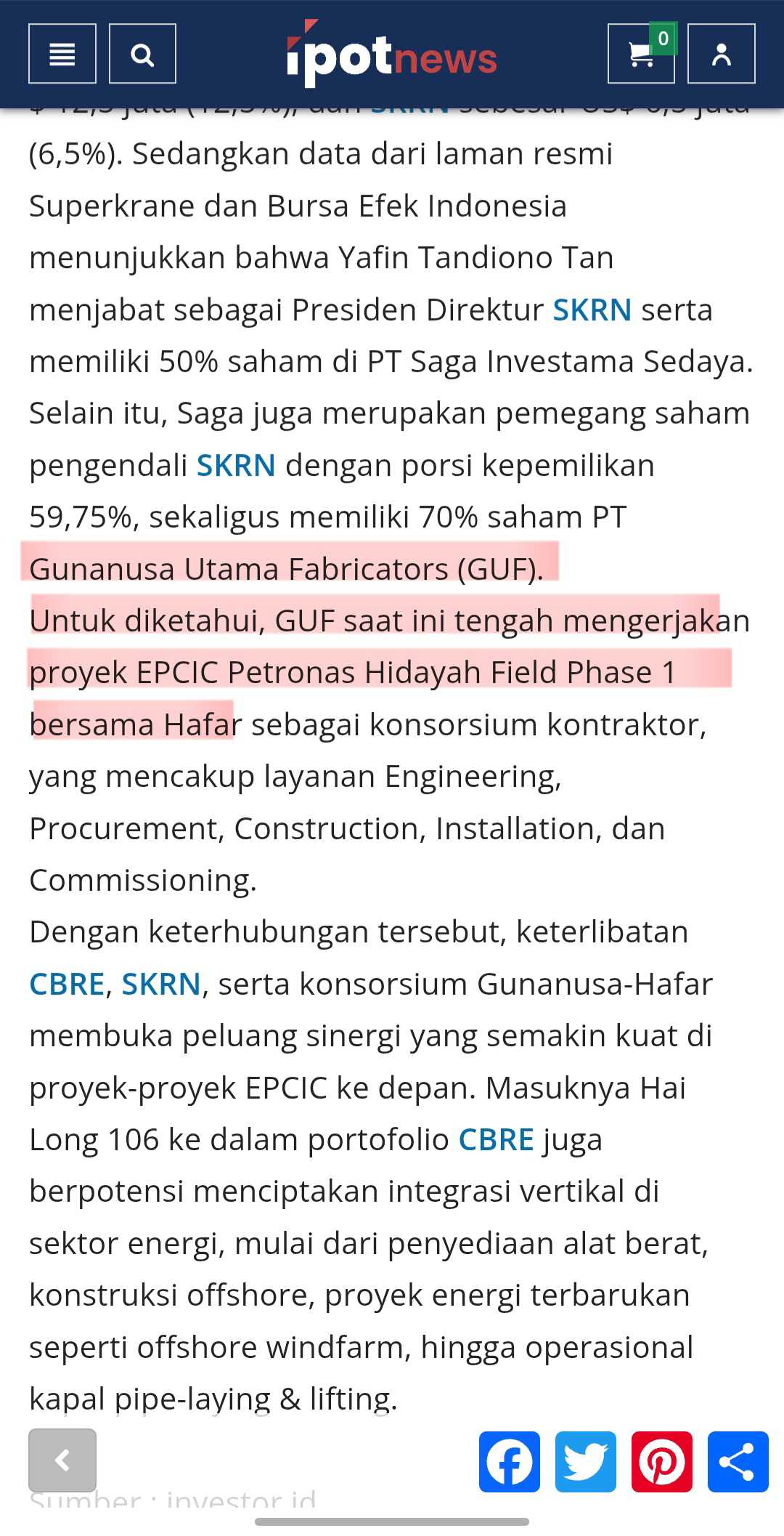 1. di postingan itu bagian deskripsi, ada tulisan $CBRE tanda tangan kontrak dgn pt guna nusa utama fabricator, bahkan di keterbukaan informasi CBRE jg jelas afiliasinya sama $SKRN kan?
