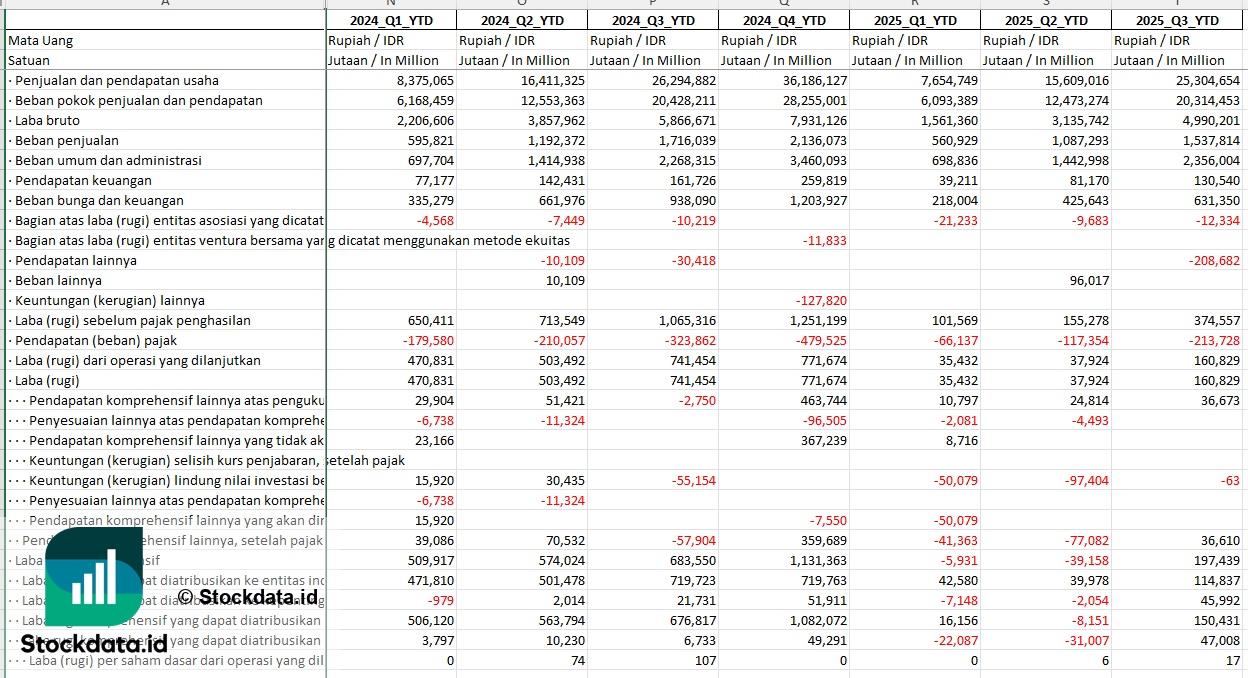 Jakarta- PT Semen Indonesia (Persero) Tbk (SMGR) atau SIG mencatat pendapatan konsolidasi sebesar Rp25,30 triliun hingga kuartal III 2025, mencerminkan kinerja positif perusahaan dalam menjaga pertumbuhan di tengah dinamika pasar domestik."Periode Januari sampai dengan September tahun 2025, v...