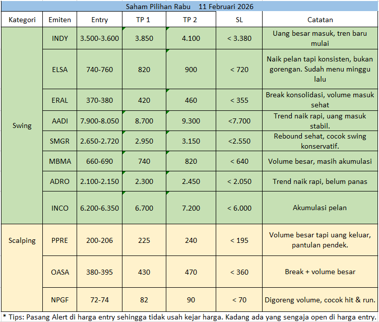 - Update (09/02/2026): O378 H406 L368 C400 BMO slight down GET OUT. CP jualan 450k lot, dari broker distribution yang nyerap retail (XL).