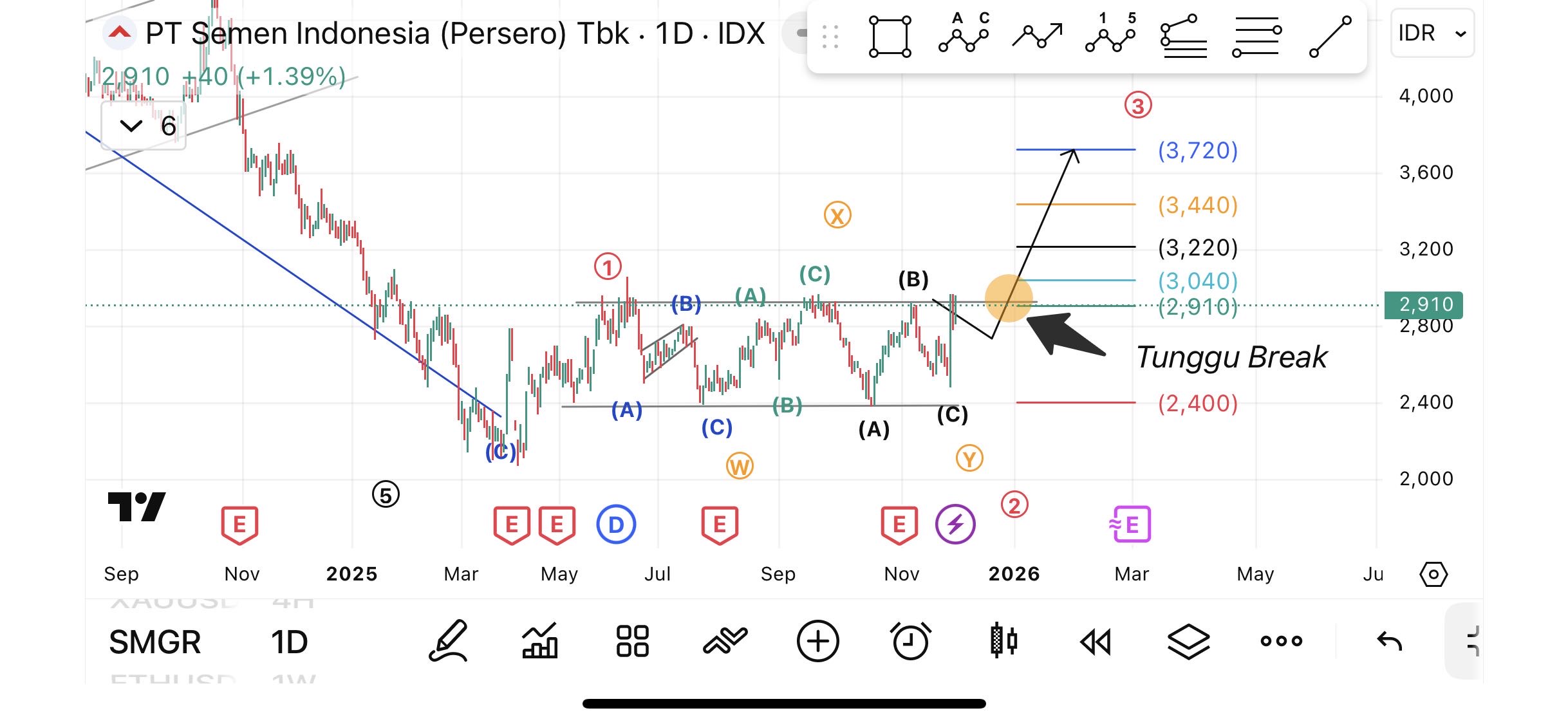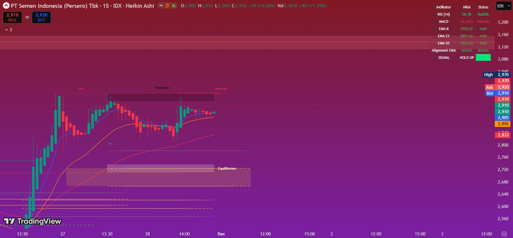➡️ Break di atas 2,910 dengan volume besar → sinyal valid untuk entry ulang.