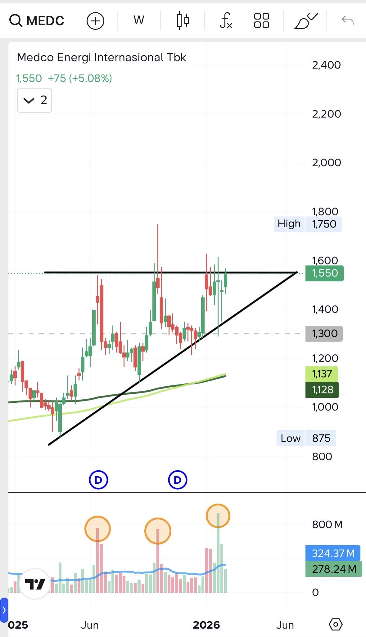 - Analisa volume : Relatif stabil, belum ada dorongan agresif