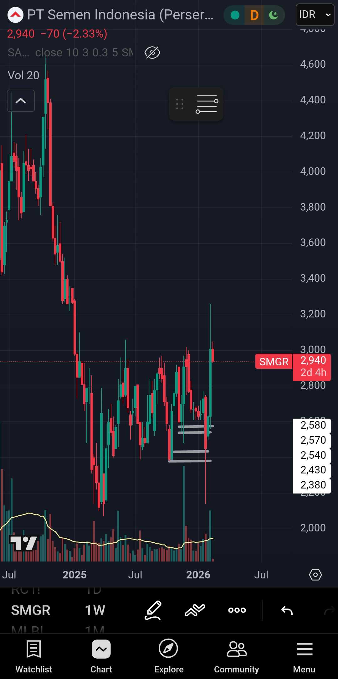 $SMGR sideways berkepanjangan yg artinya sedang akun/distribusi.tetapi pada akhir nya Uda breakout 2960 yg artinya kemungkinan BESAR menuju 3600.gud luck all