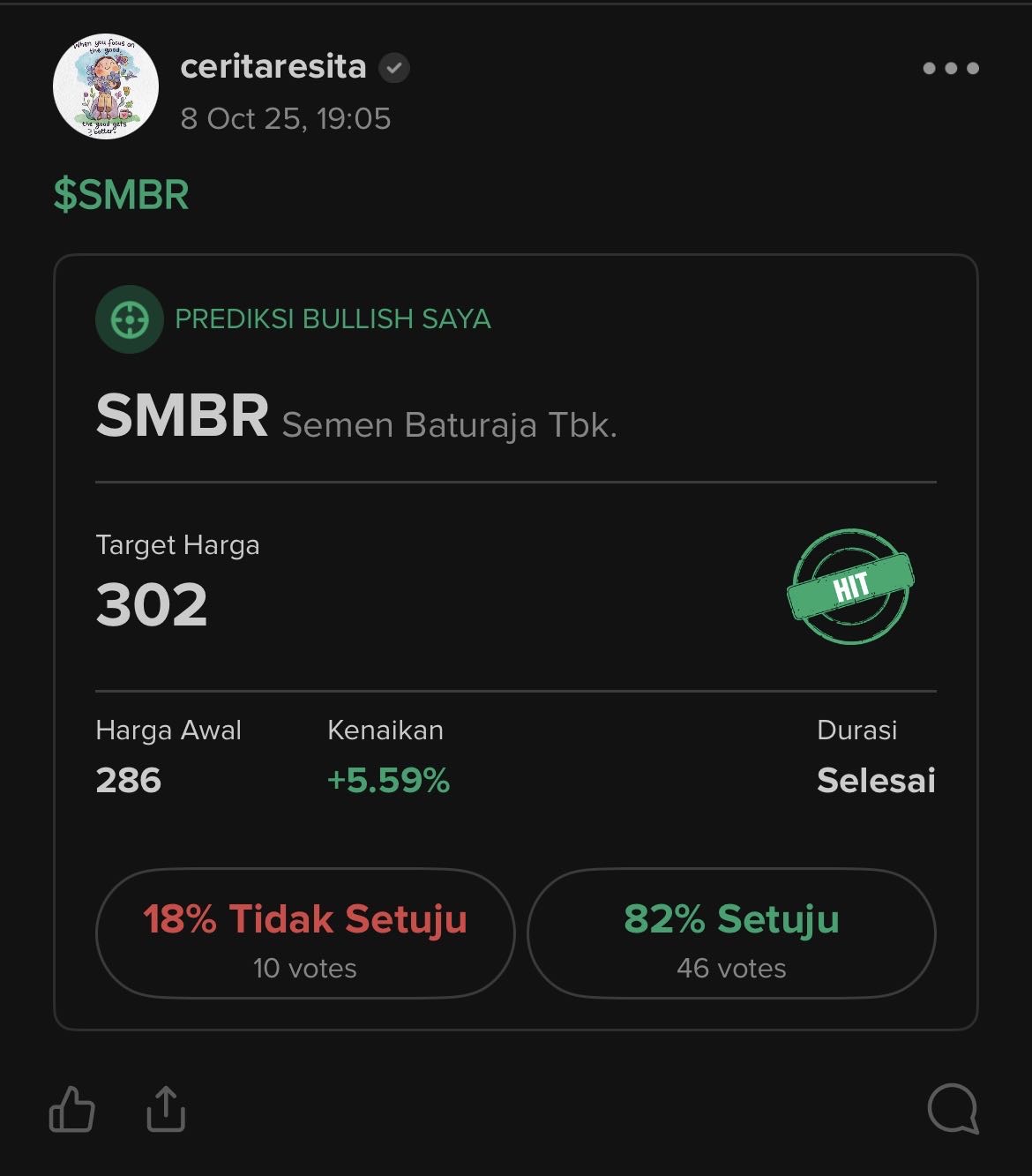$SMGR kalaupun tutup +1-2% aja udah seneng gua, berarti akumulasimya jalan terus. tinggal tunggu agresifnya