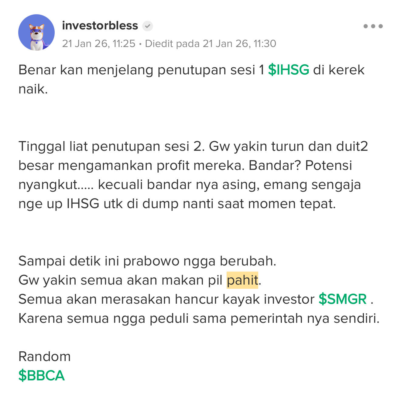 Dan skg semua seperti kinerja $SMGR dan semua makan pil pahit kayak Investor SMGR. Liat betapa nyatanya Kuasa Tuhan.