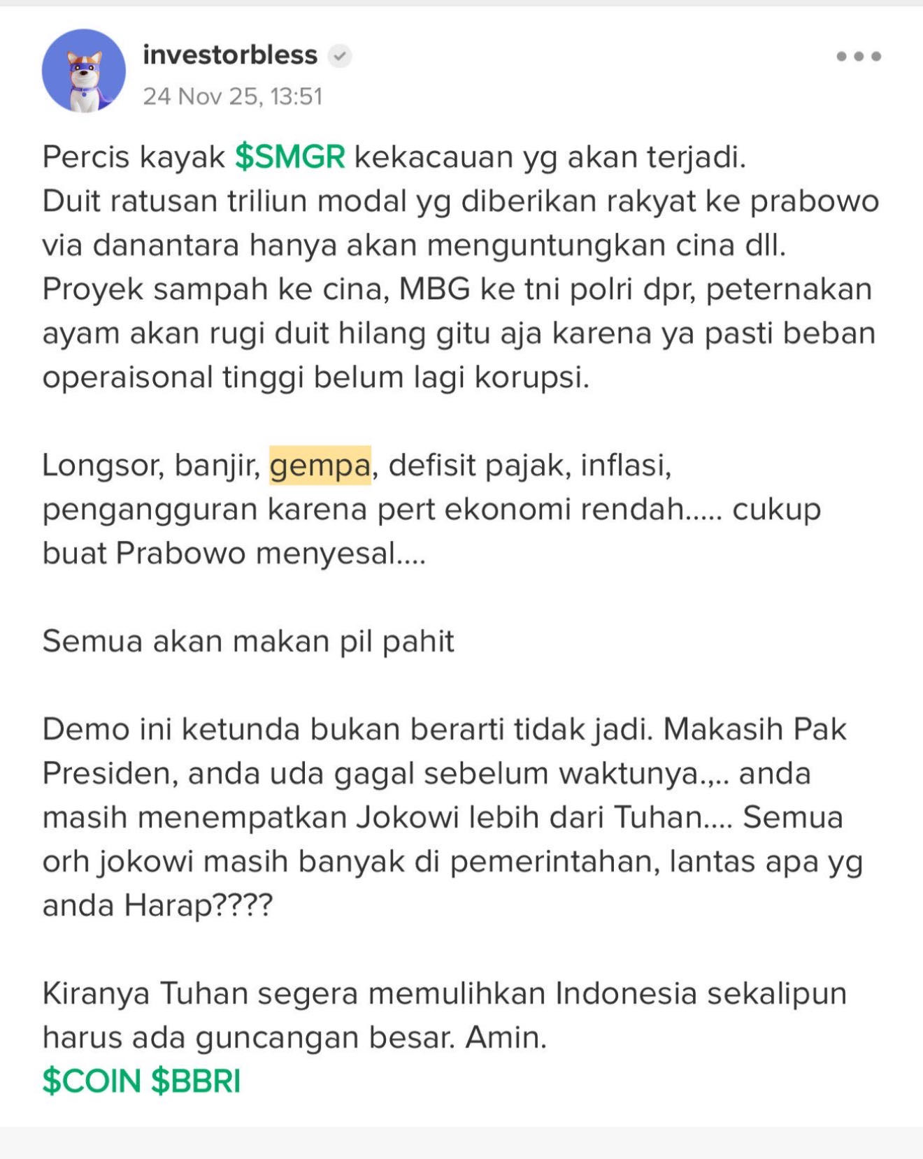 Jaga Indonesia jgn sampao dihancurkan kayak $SMGR…