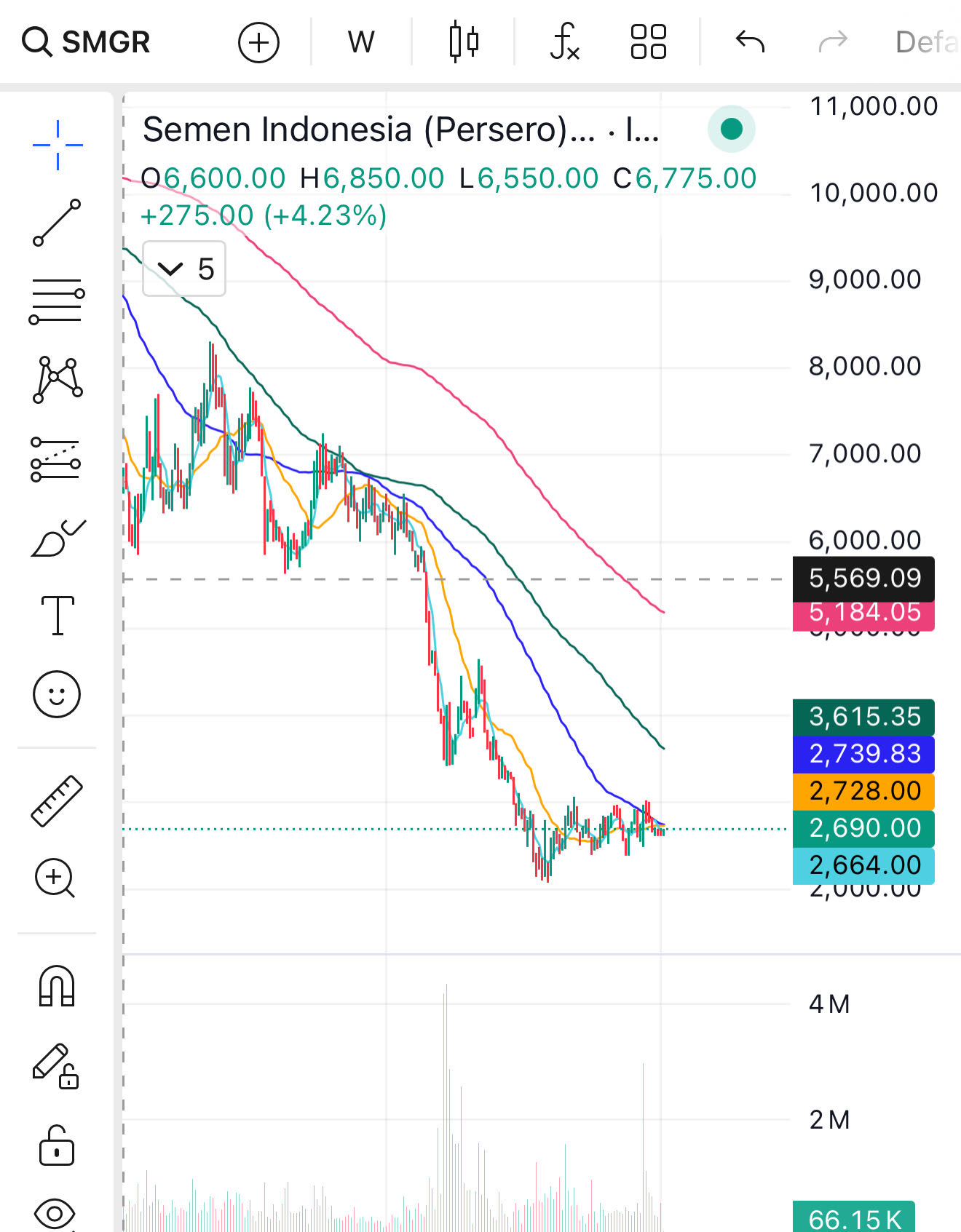 4. dalam hal ini saya ambil contoh saham $SMGR , harga rata2 broker > di banding dengan harga saat ini.