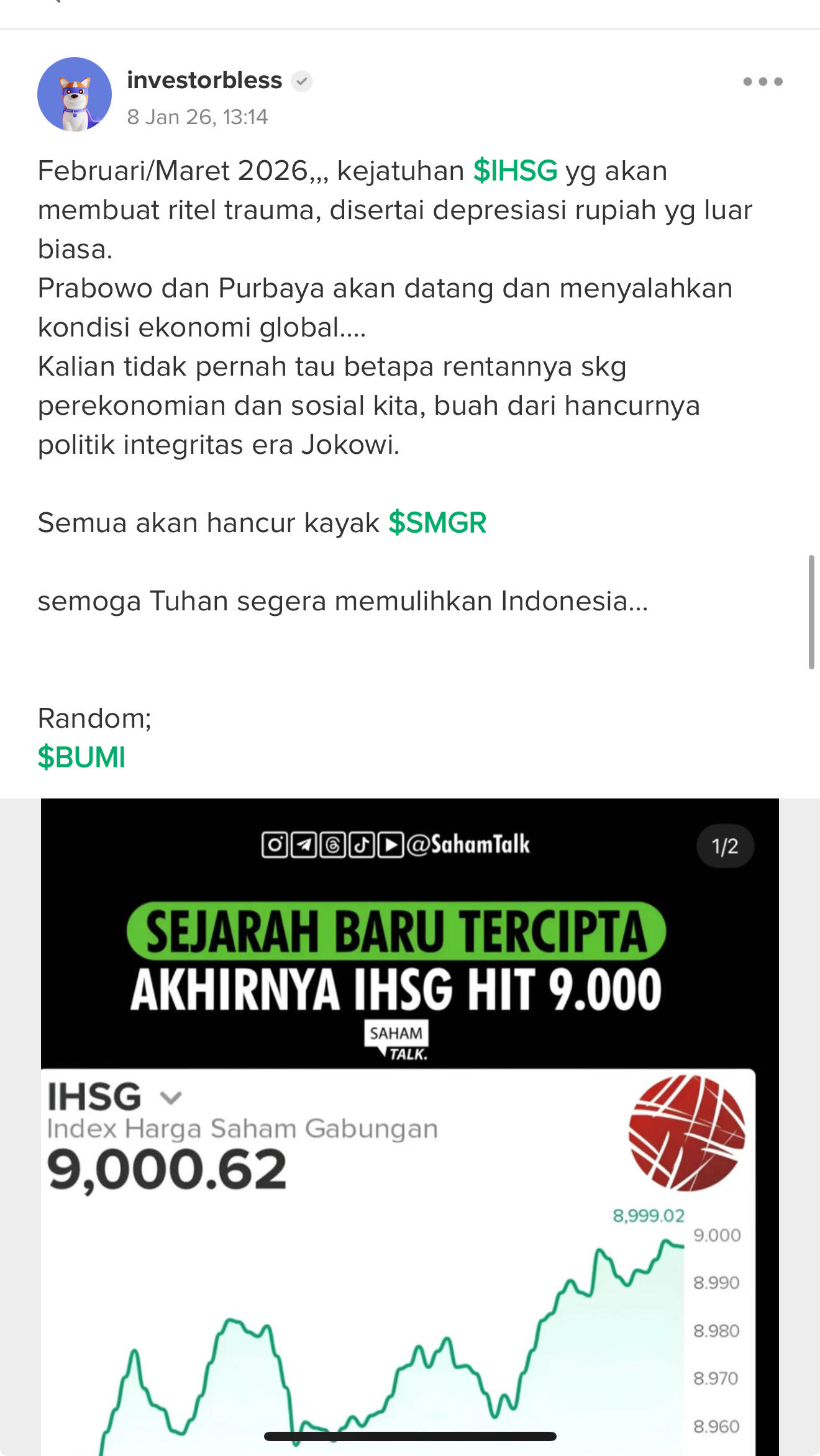 @investorbless, salah satu korban $SMGR, paling getol bikin post "Jokowi biang kerok".