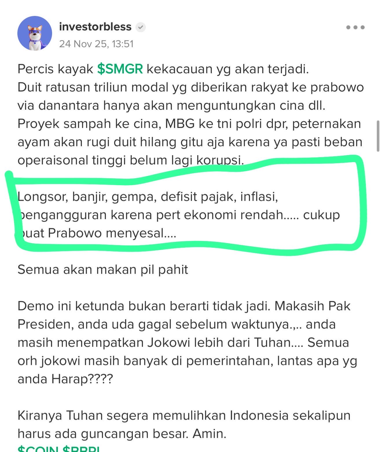Dari tahun lalu gw uda bilang jaga indonesia jgn sampai hancur kayak SMGR .