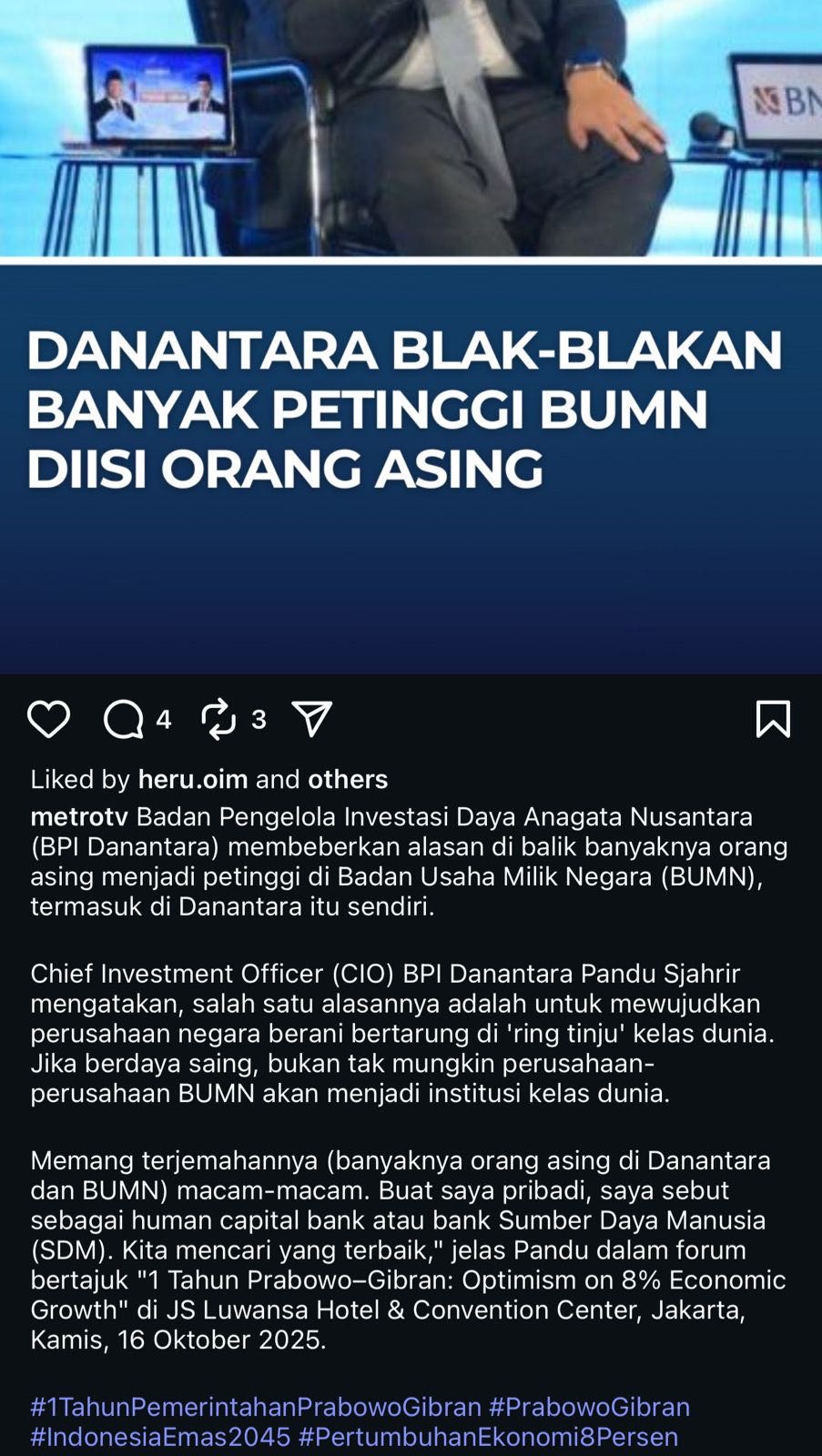di jam market saya akan posting salah satu Emiten di bawah Danantara