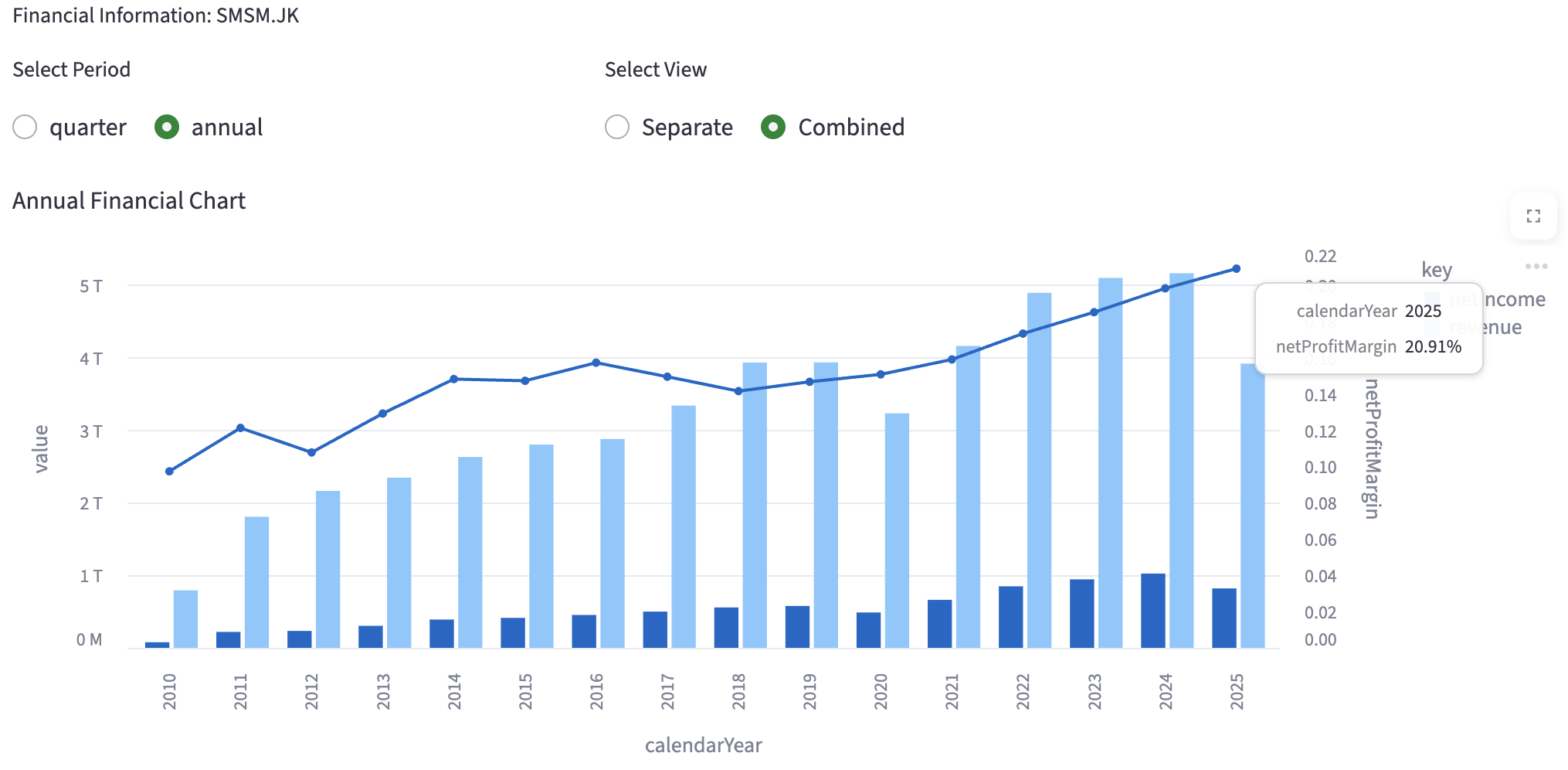 Salah satu emiten yang mengalami keuntungan dari menguatnya USD adalah $SMSM dikarenakan kurang lebih 60% dari penjualan itu dari export. Seperti bisa dilihat di grafik, net profit margin mengalami kenaikan yang konsisten dimana tahun 2018 itu sekitar 14% dan di 2025 meningkat menjadi 20%. Mungkin cocok untuk yang mau hedging currency risk dari $ICBP.