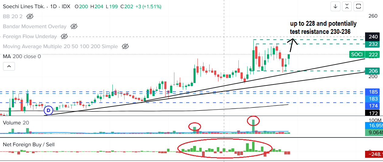 š¼ $SOCI gap up ke 218 (+6 / +2.83%) dari 212
