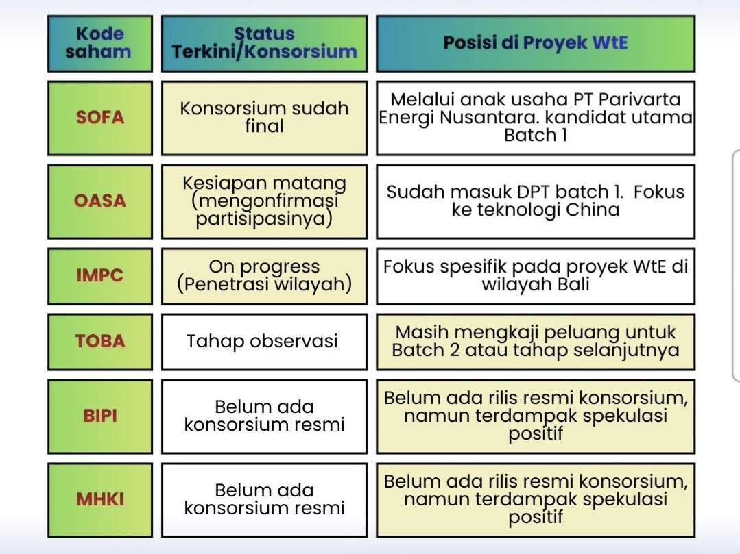 Sudah masuk dalam daftar emiten dengan eksposur WtE