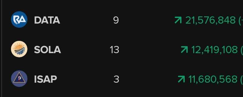 11 - $SOLA turun dari peringkat 8 ke 11 karena tidak ada perubahan realized di +12.4jt.