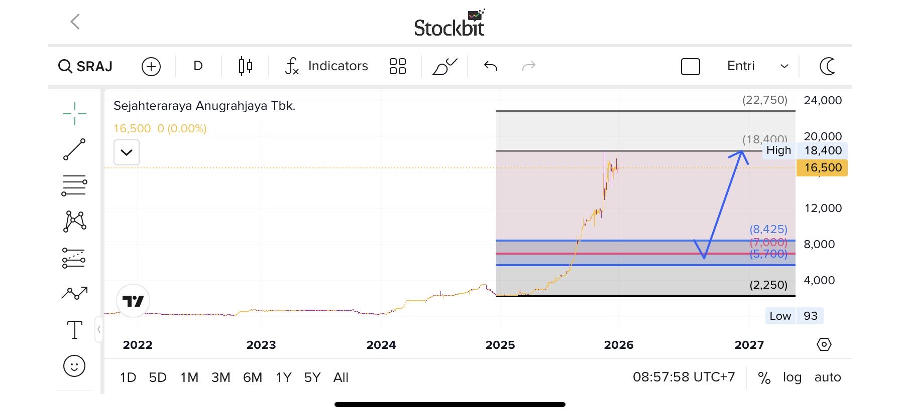 Alasan: Breakout 17.300 bisa aktifkan momentum bullish lanjutan. SRAJ biasanya lanjut kuat kalau resistance utama ditembus, Boss.