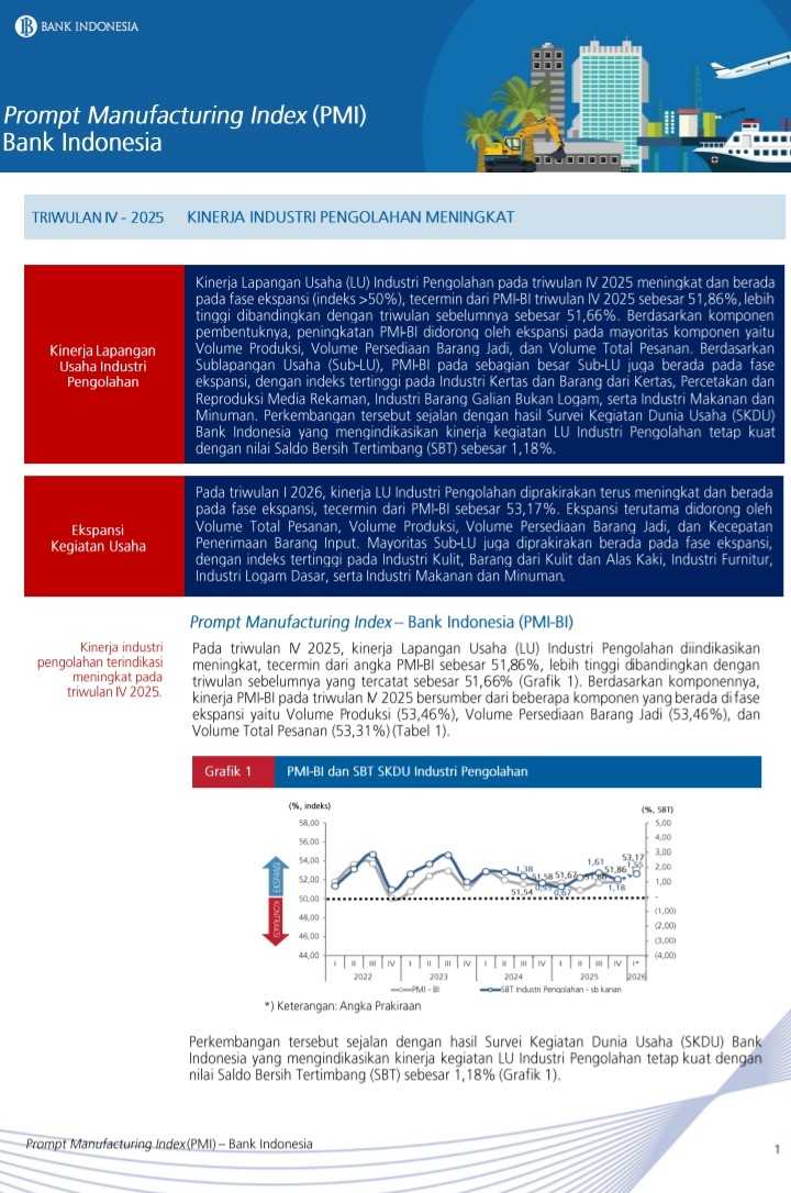 Rilis data Prompt Manufacturing Index (PMI) Indonesia Q4 2025 oleh BI