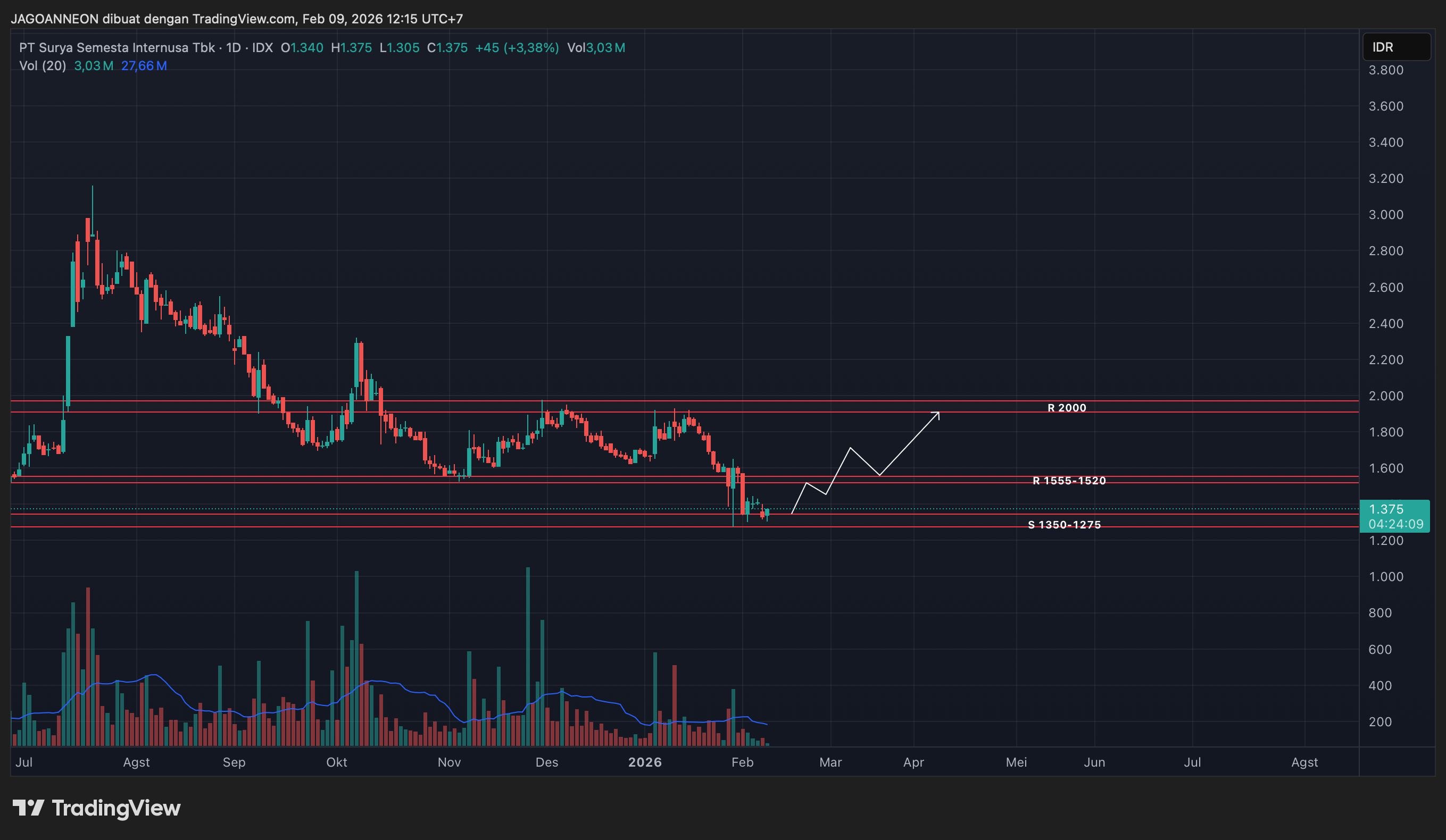 KABARBURSA.COM – Pergerakan saham PT Surya Semesta Internusa Tbk (SSIA) pada perdagangan awal pekan ini, Senin, 9 Februari 2026, menampilkan dinamika yang kontras antara lonjakan harga dan tekanan jual yang justru dominan sepanjang sesi.