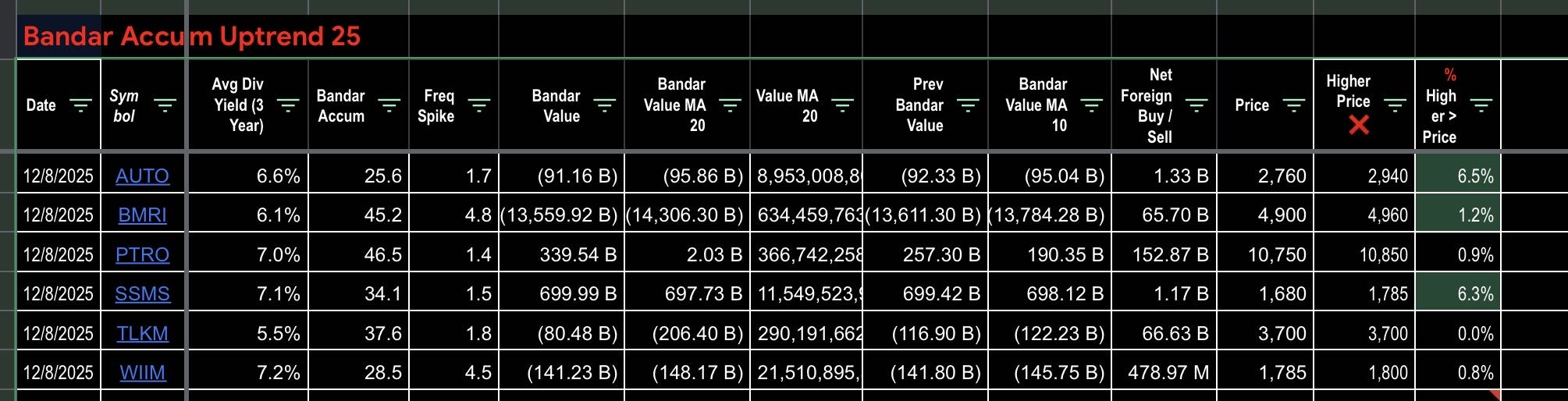 Update Higher To Price dari sinyal yang muncul hari tsb :