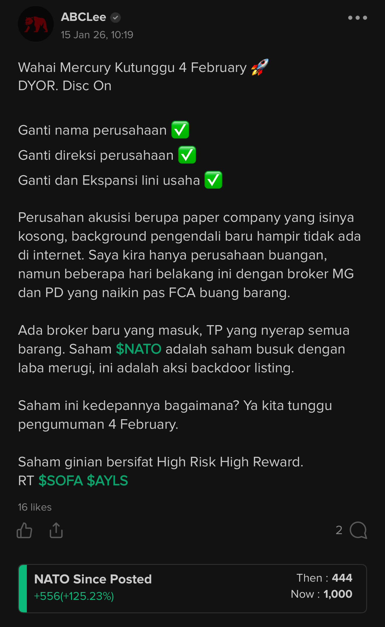 1 Minggu 1 Bagger ($NATO) โฌ๏ธ